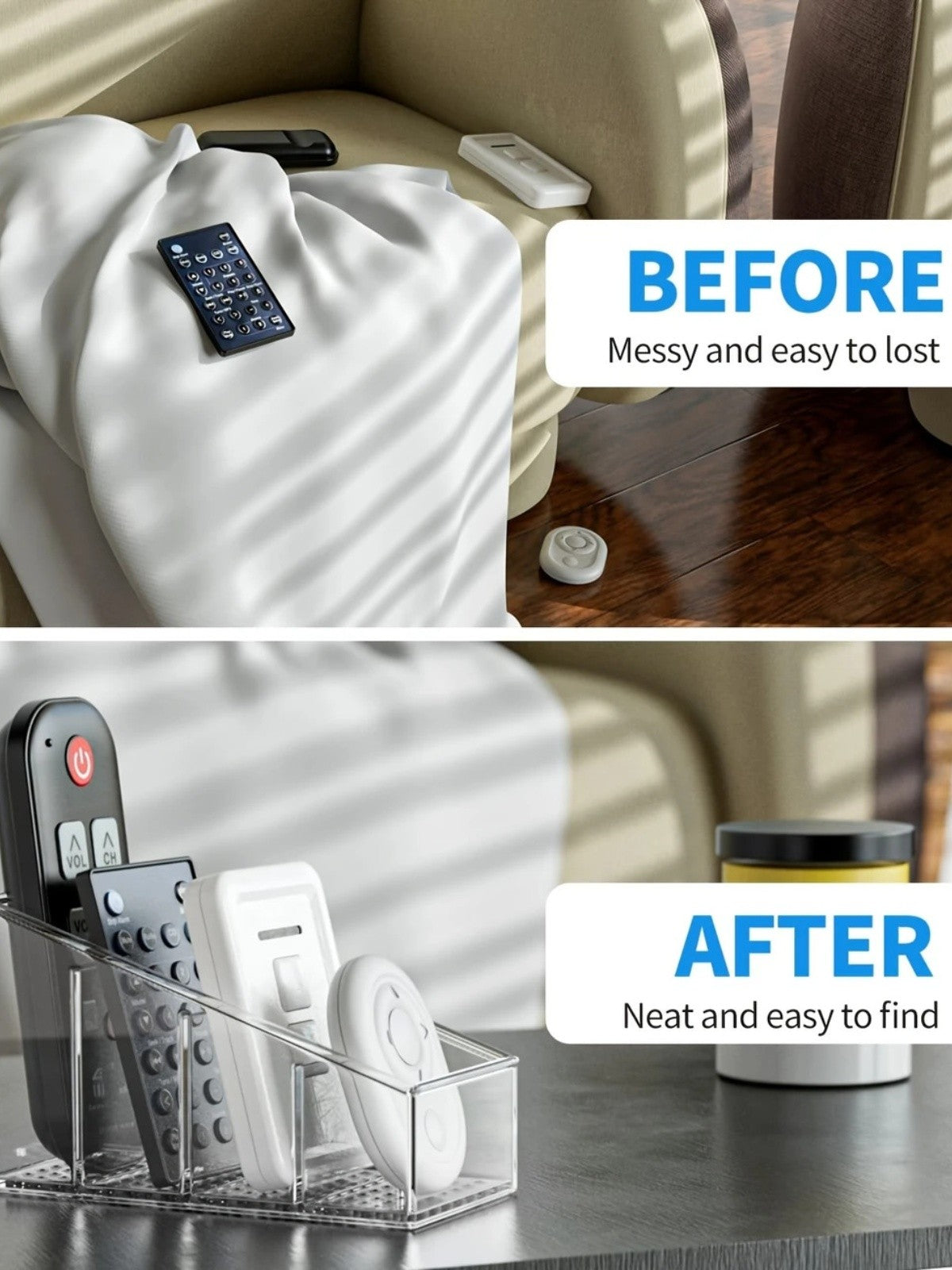 1pc suporte de controle remoto de plástico transparente com 4 compartimentos-id