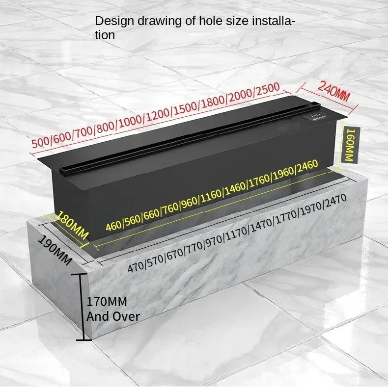 Instalação Versátil: Tipo INSERT (Embutida), com vários tamanhos disponíveis (de 800mm a 2000mm) para se adequar a qualquer projeto.