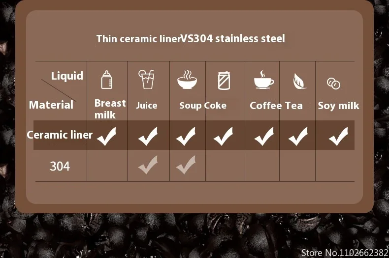 410ml forro cerâmico garrafa térmica xícara de café parede dupla aço inoxid