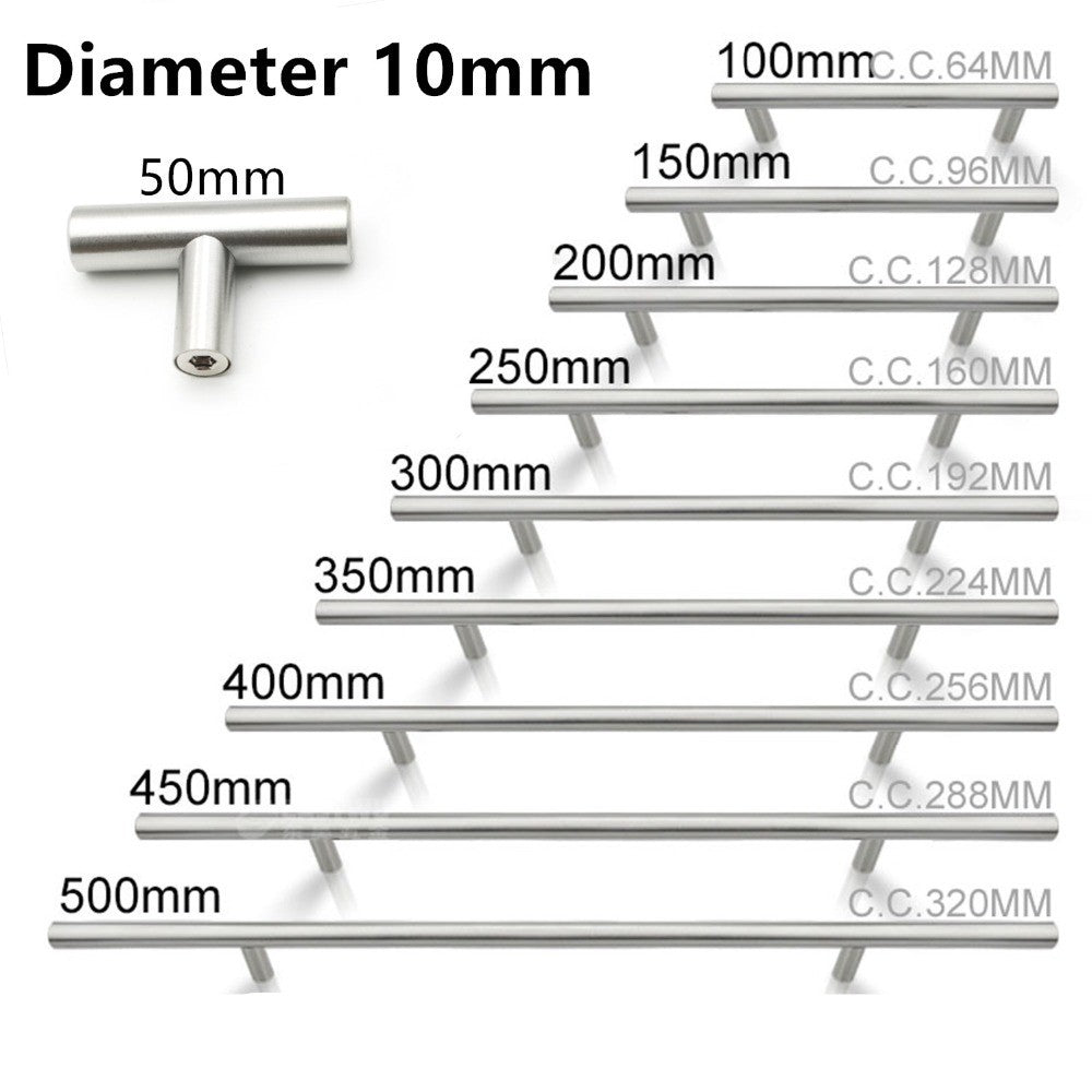 50mm a 500mm de aço inoxidável porta da cozinha armário t barra alça puxador