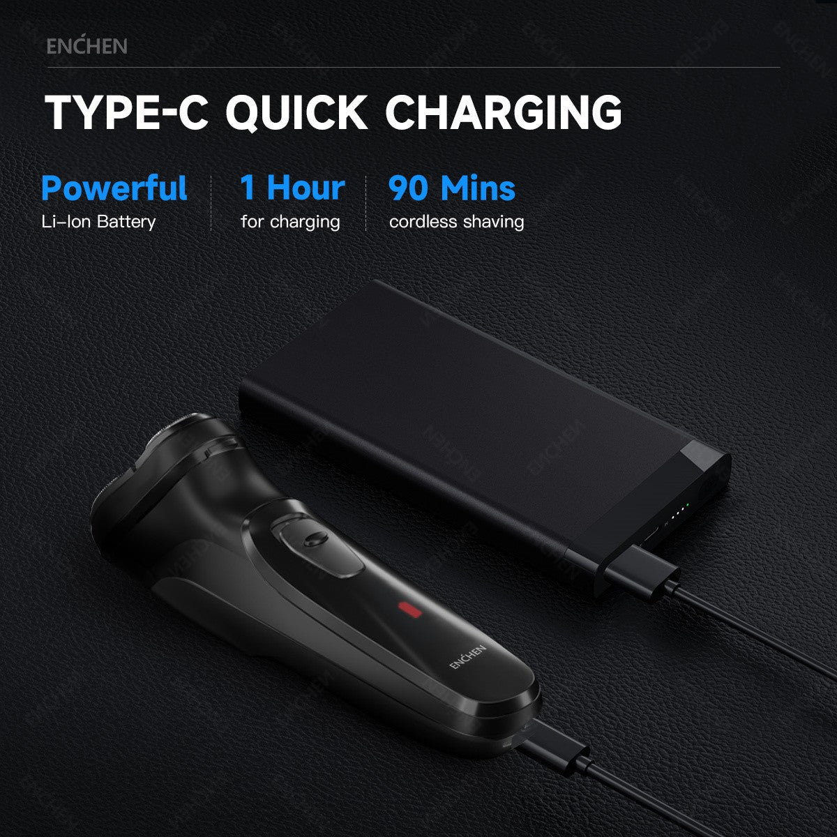 ENCHEN BlackStone 3D Barbeador elétrico para homens, USB, recarregável, inteligente, barbeador elétrico de carregamento rápido, barbeador elétrico