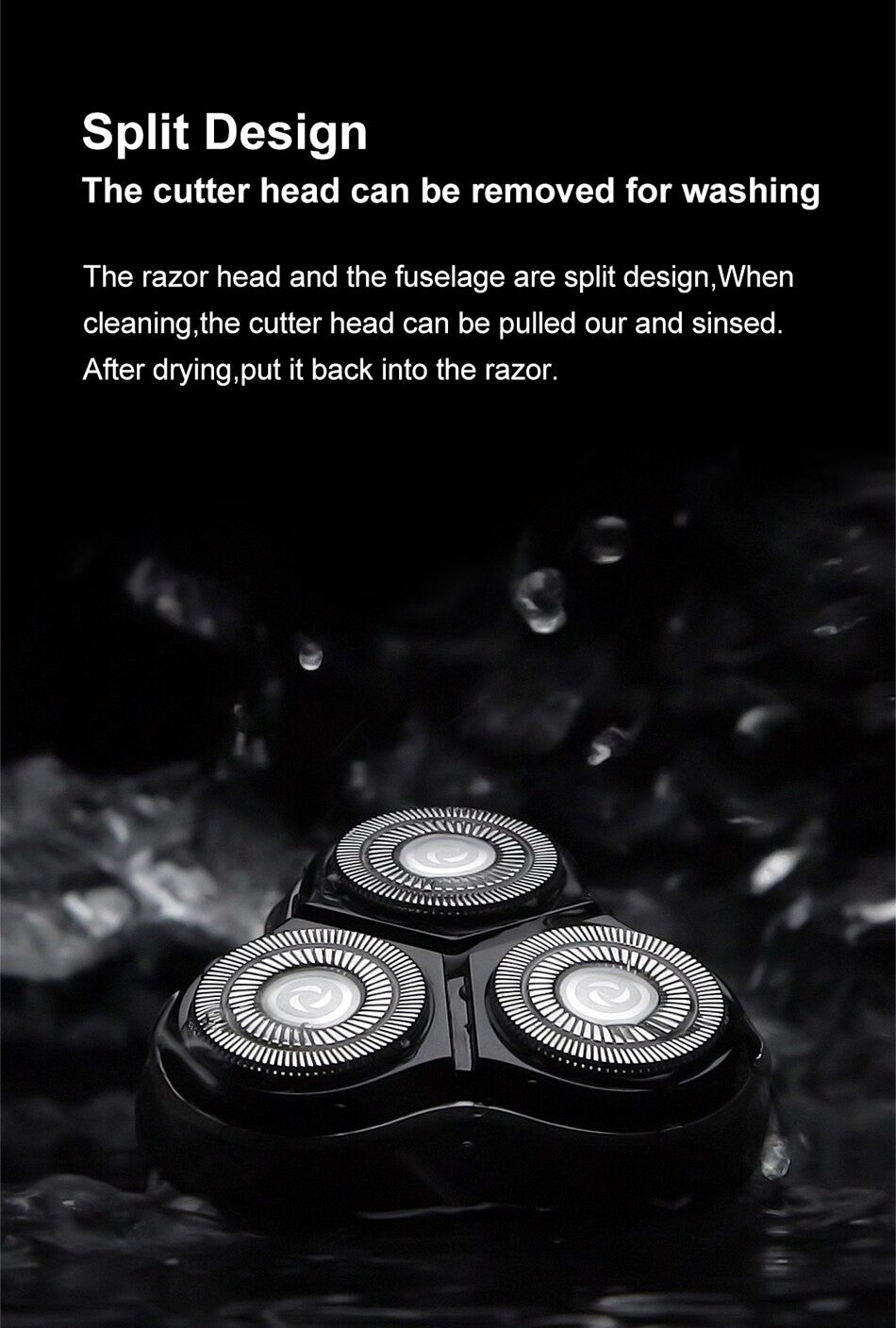 ? Esta navalha tem três conjuntos de cabeças de corte flutuantes independentemente, que adicionam 1/3 de área de barbear do que a navalha de corte duplo comum. A cabeça de corte tem um toque suave e folheado elástico para se adaptar a diferentes contornos de face.