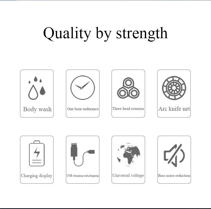 ?NICELY FOR TRAVEL/HOUSEHOLD?: O barbeador elétrico usa design de corpo compacto e leve, com cabeças multifuncionais, apenas ocupam muito pouco espaço. Bem para viagem a negócios/agregado familiar. Você vai encontrá-lo um kit de barbear perfeito não importa usá-lo em casa ou em viagens.