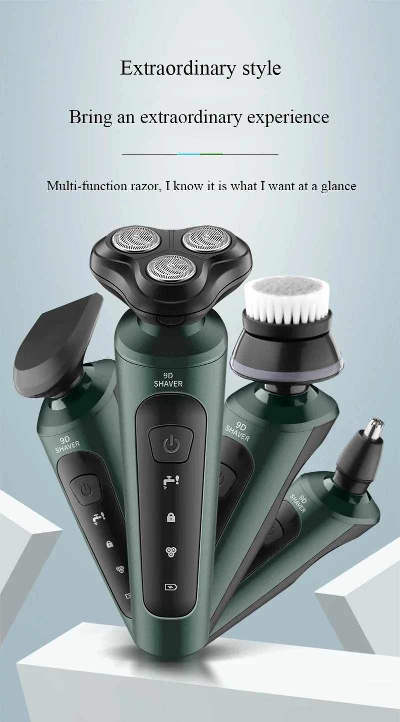 ? 4 EM 1 LISO E FECHADO DE PARAFILA ELÉTRICA DOS HOMENS?: Este barbeador elétrico para homens é um multifuncional 4 em 1, o que facilita sua vida, para barbear barba, costeletas/cabelos, aparador nasal, limpeza facial. Com avançada tecnologia flutuante 4D, o barbeador elétrico/barbeador rotativo com técnica de lâminas de precisão se adapta aos contornos do rosto, pescoço e até mesmo a mandíbula. As bordas arredondadas movem-se suavemente sobre a pele para reduzir a irritação, proporcionam uma experiência completamente suave, próxima e confortável.