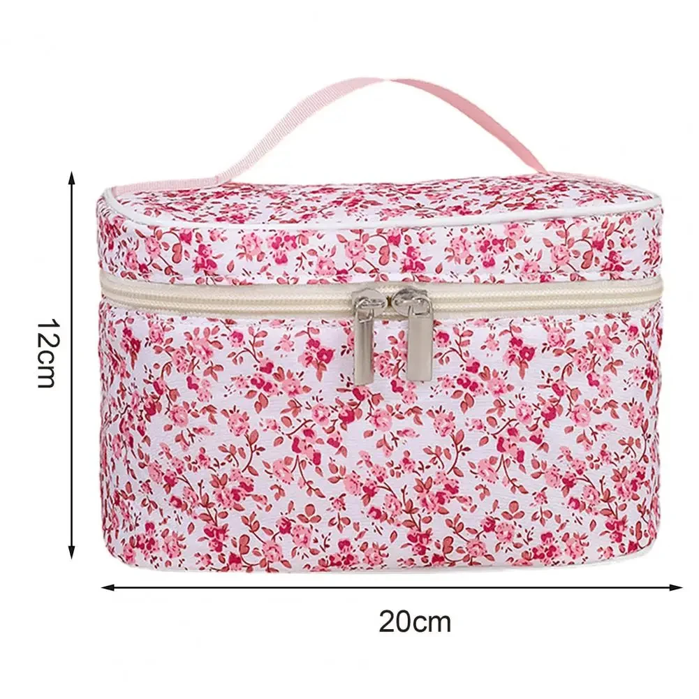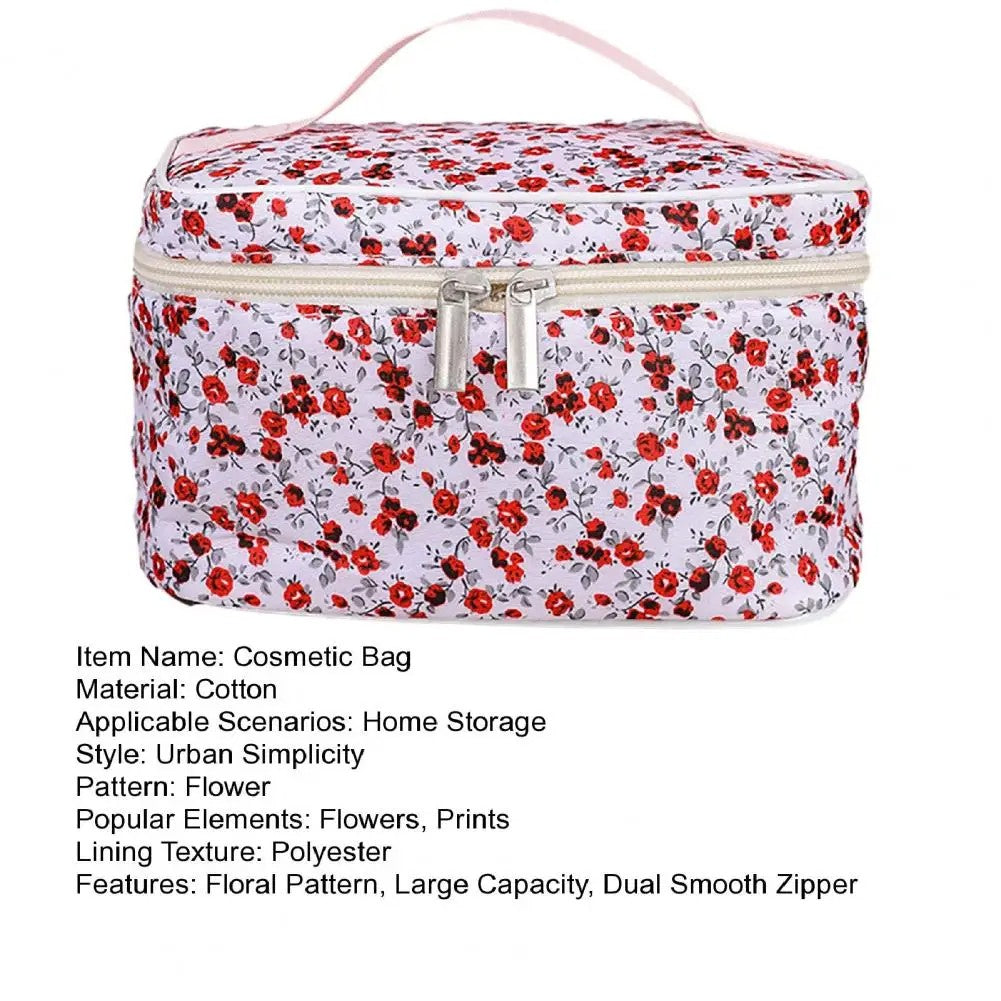 Bolsa cosmética de algodão padrão floral capacidade saco cosmético duplo zí