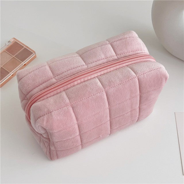 Bolsa de armazenamento de cosméticos de pele sólida, grande, feminina, zíper,