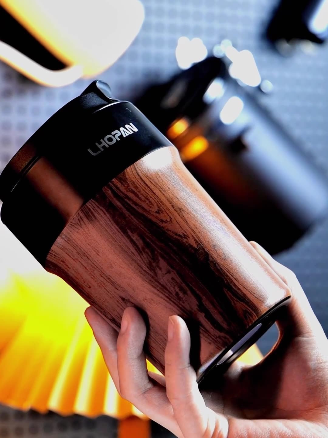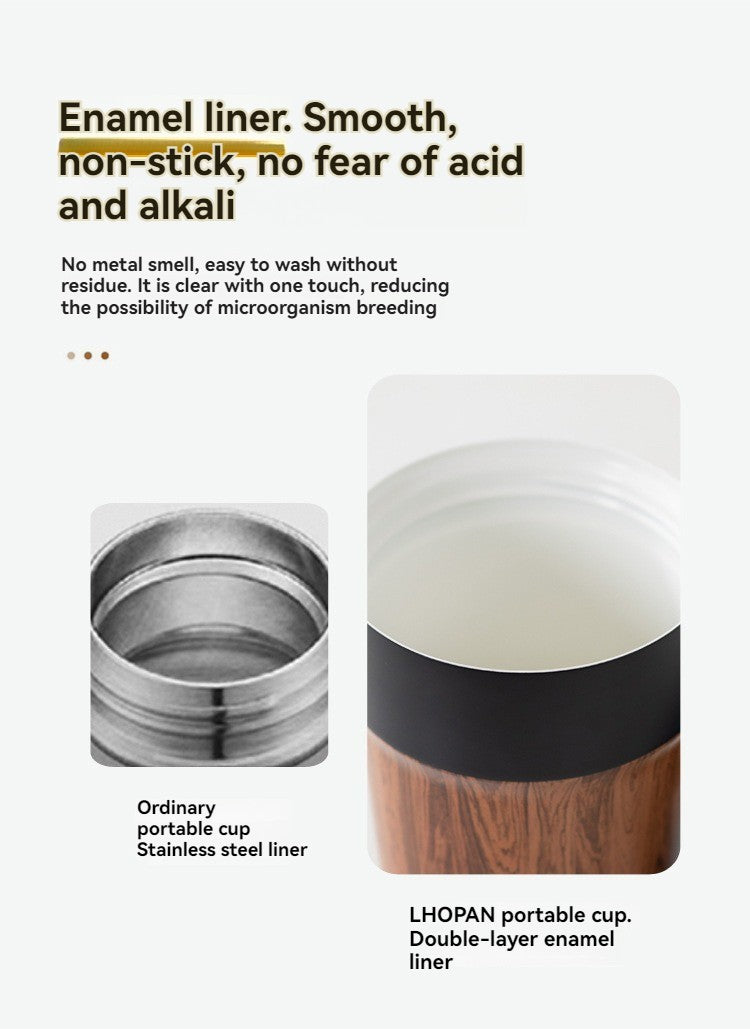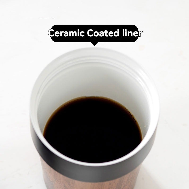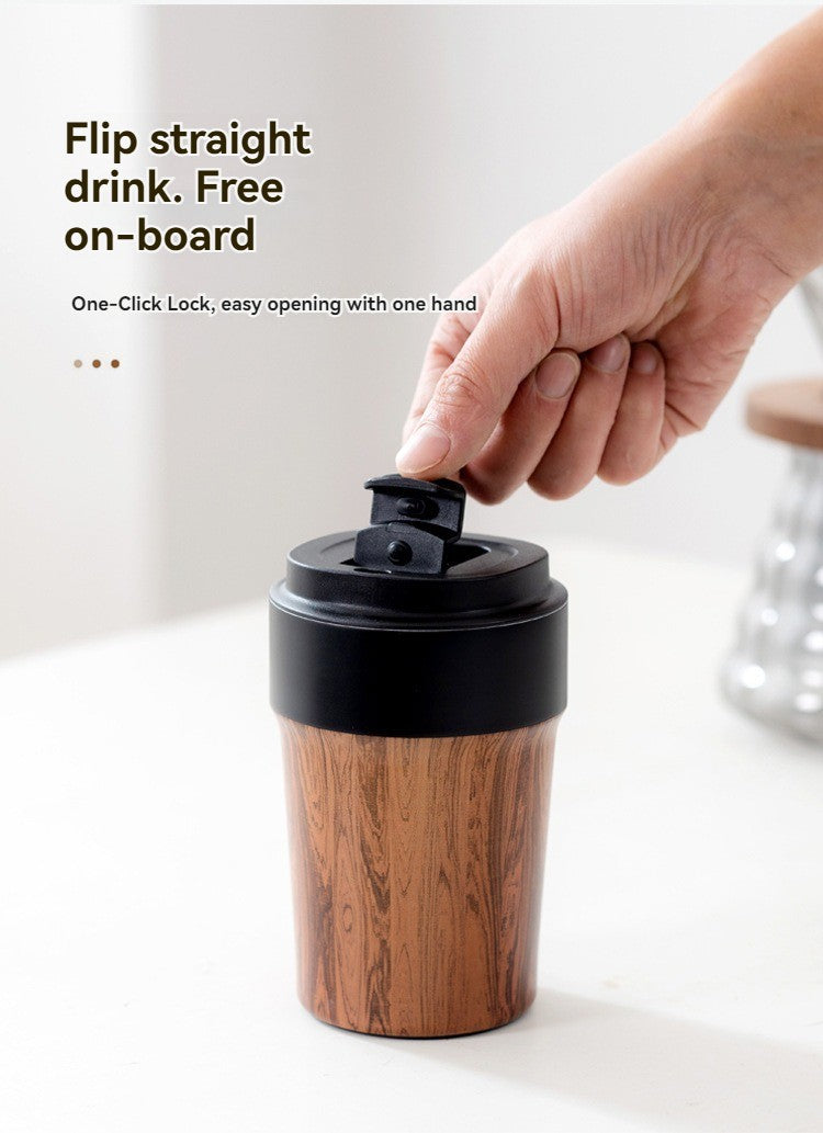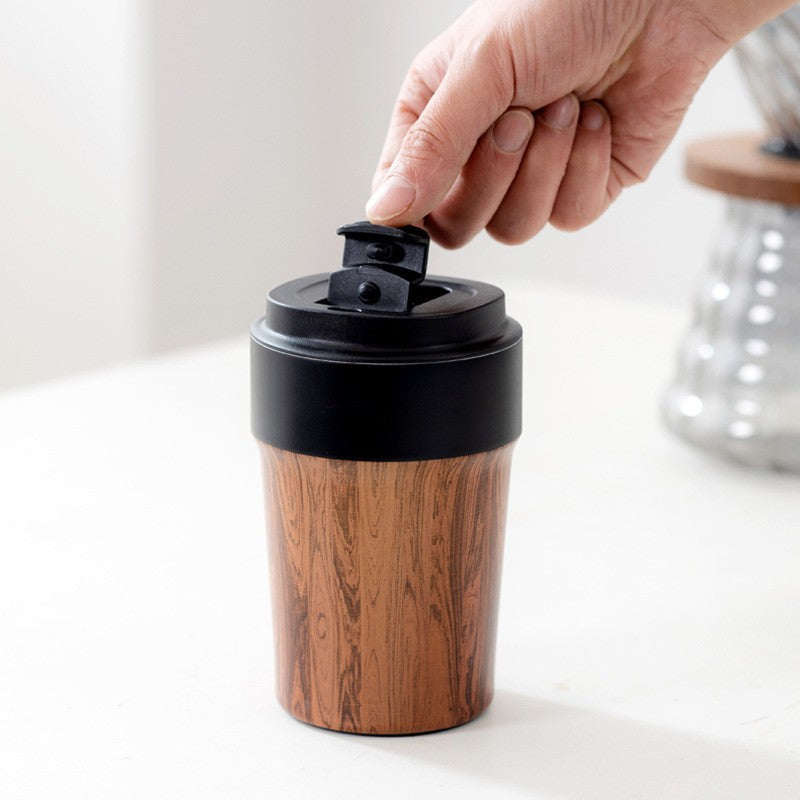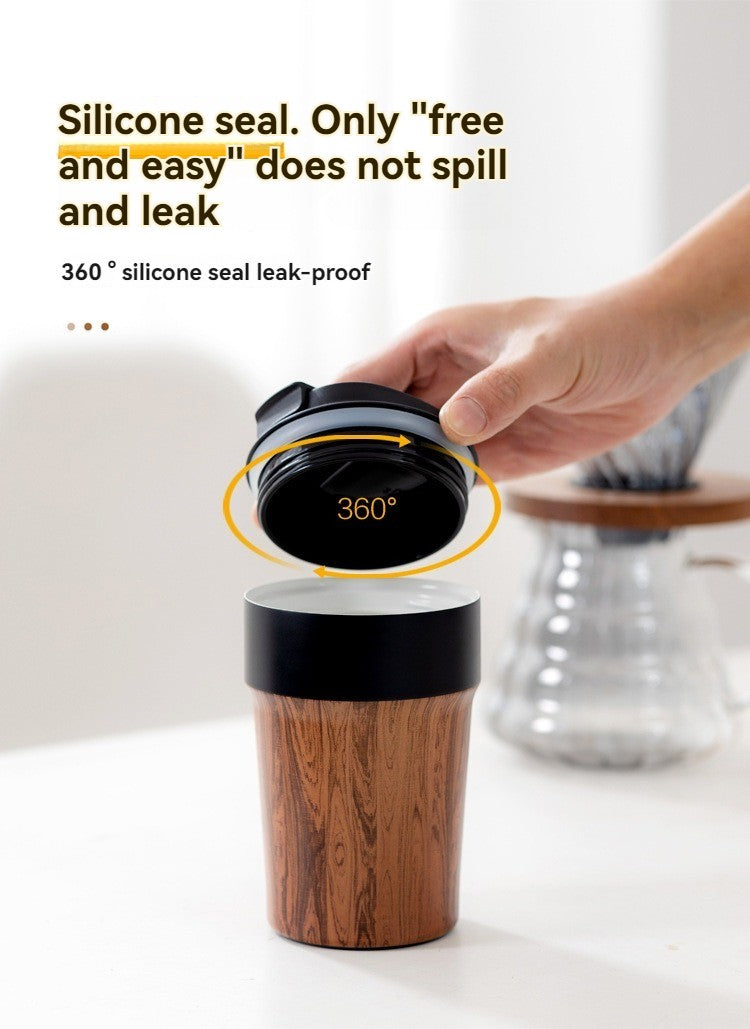 Caneca de café portátil de grãos de madeira com tampa Copo isolado a vácuo C
