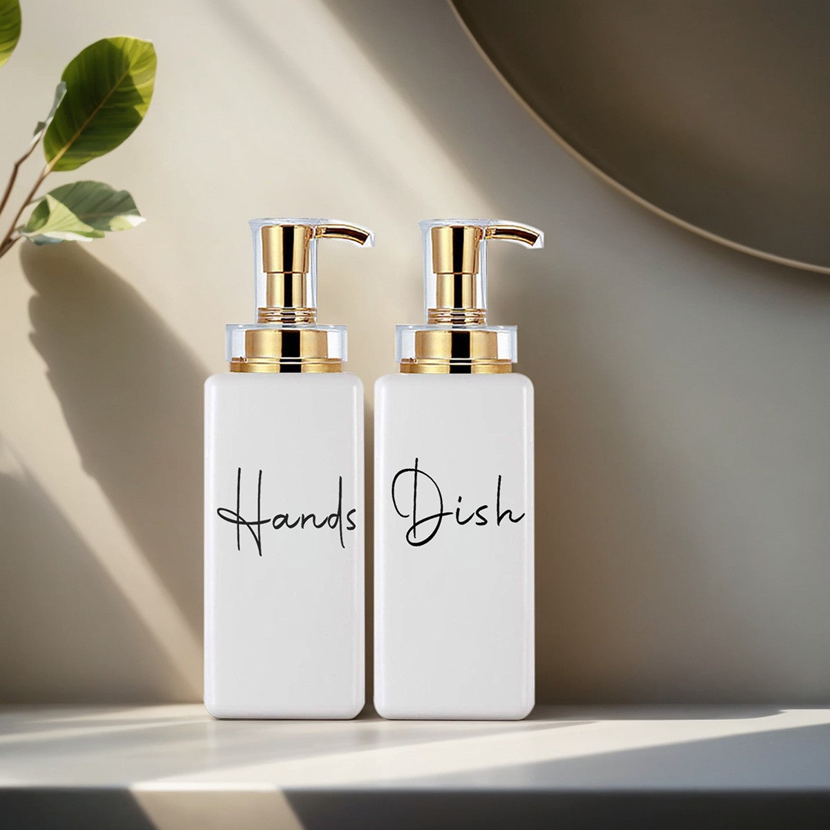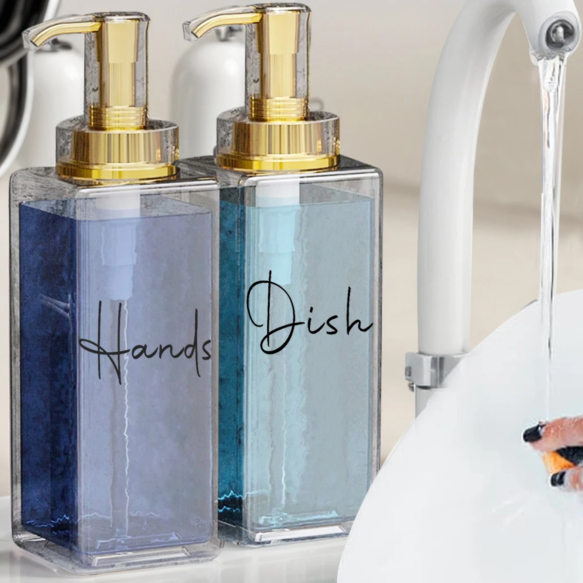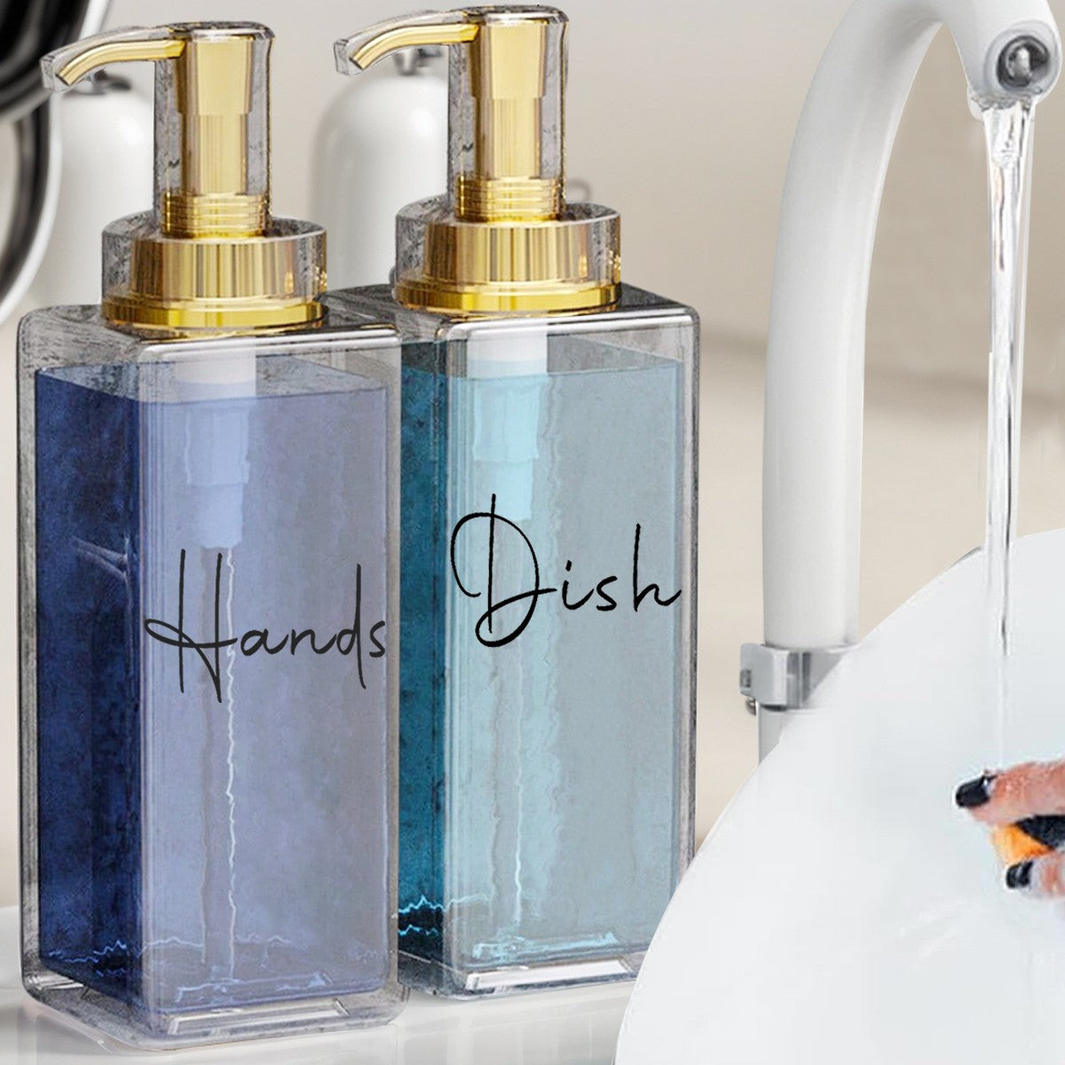 Conjunto de dispensador de sabão para mãos e pratos, formato quadrado, garrafa