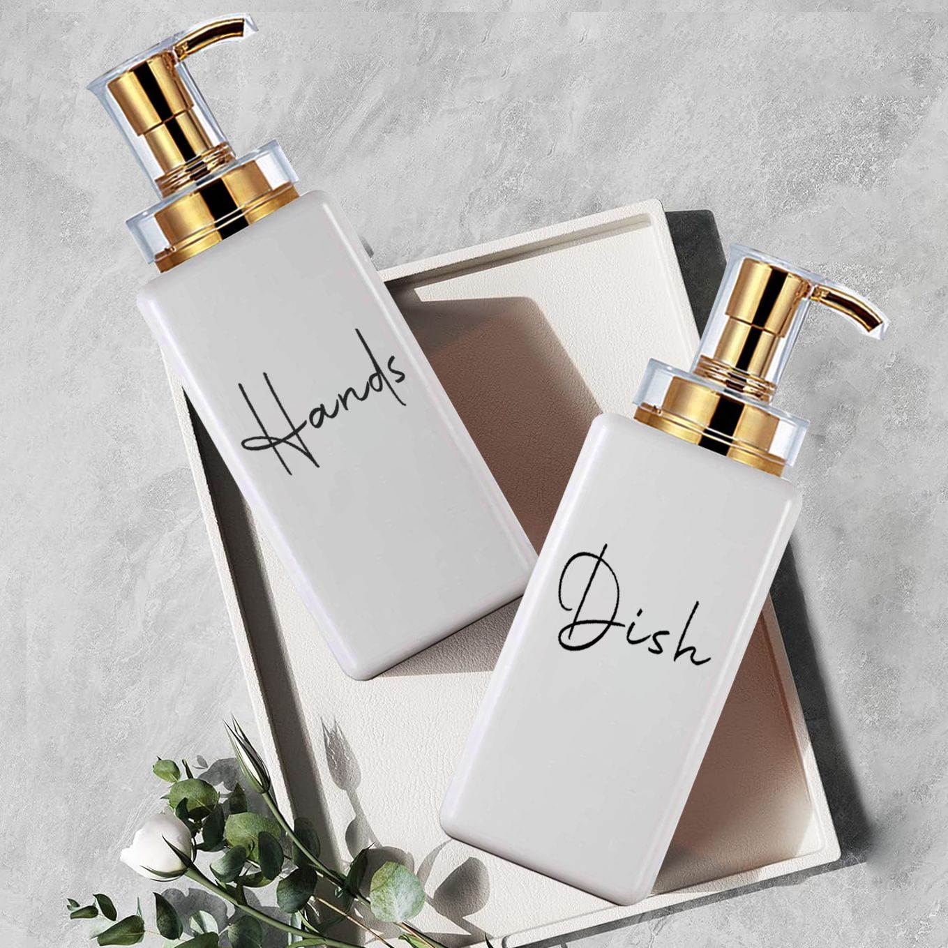 Conjunto de dispensador de sabão para mãos e pratos de cozinha em formato quadrado Plástico 500ML/16,9OZ Garrafa de sabão recarregável com bomba de ouro Acessórios de pia de decoração de cozinha de luxo