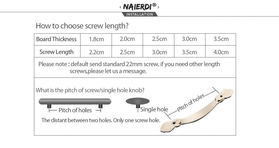 O puxador é confortável ao toque e é um "ótimo ajudante" para abrir seus móveis. Se precisar de comprimentos de parafusos diferentes do padrão, basta deixar uma mensagem no pedido.