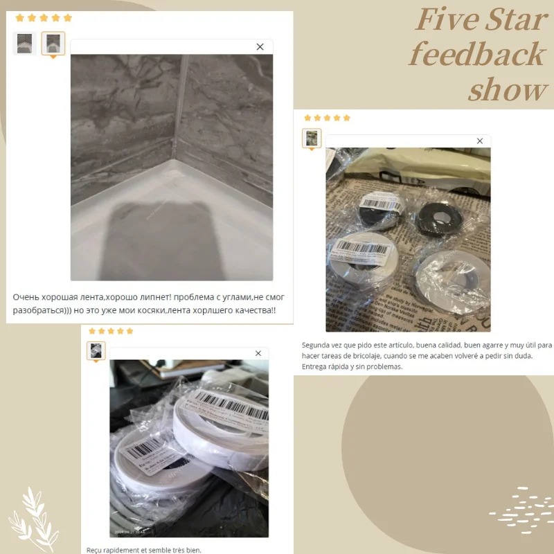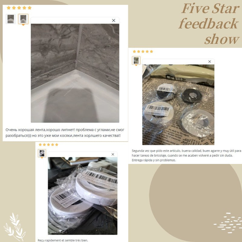 ??Ampla utilização? A fita de vedação à prova d'água pode ser usada nas juntas da pia da cozinha e na borda da banheira.O design vinco da tira de calafetagem permite preencher as lacunas entre as paredes verticais.