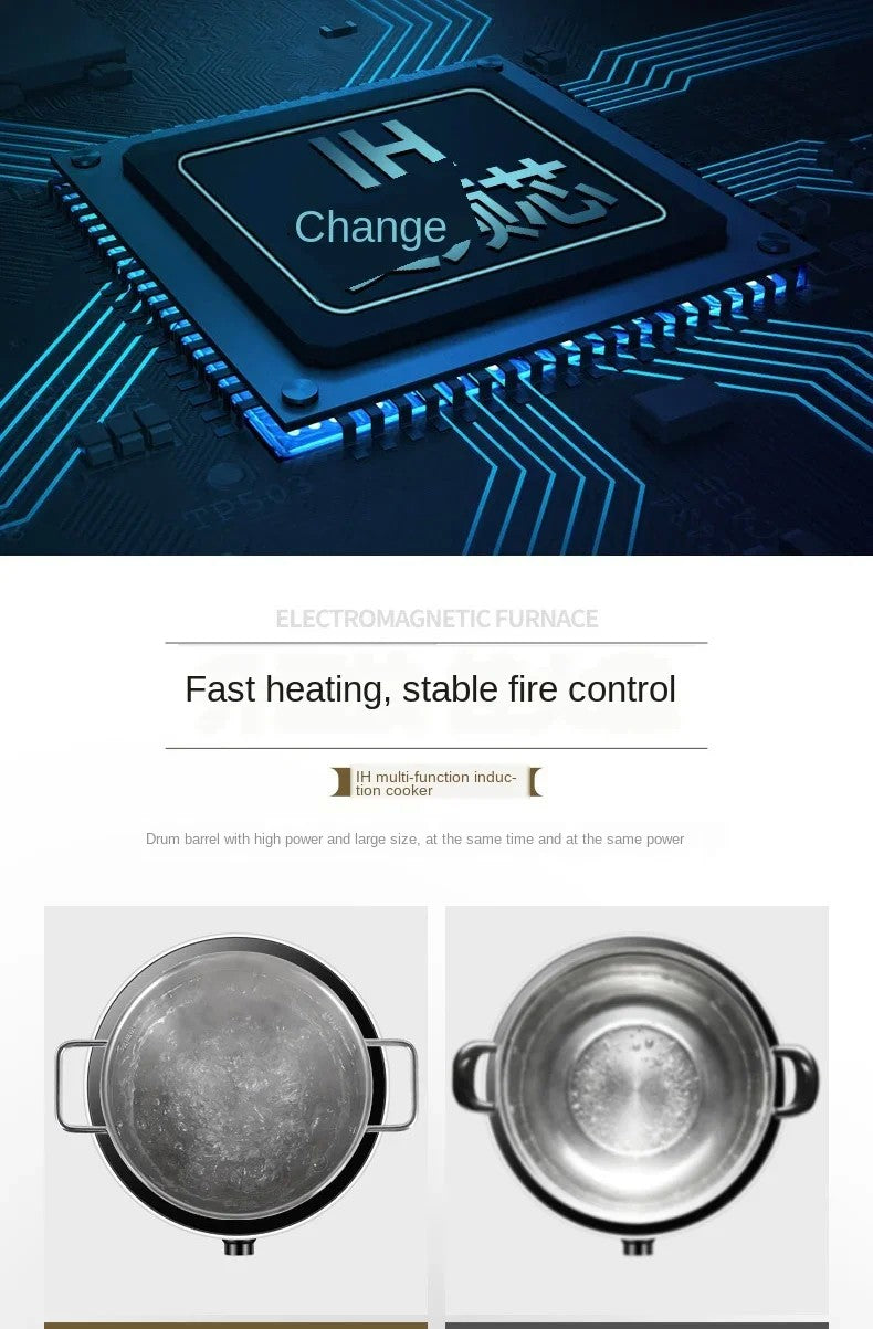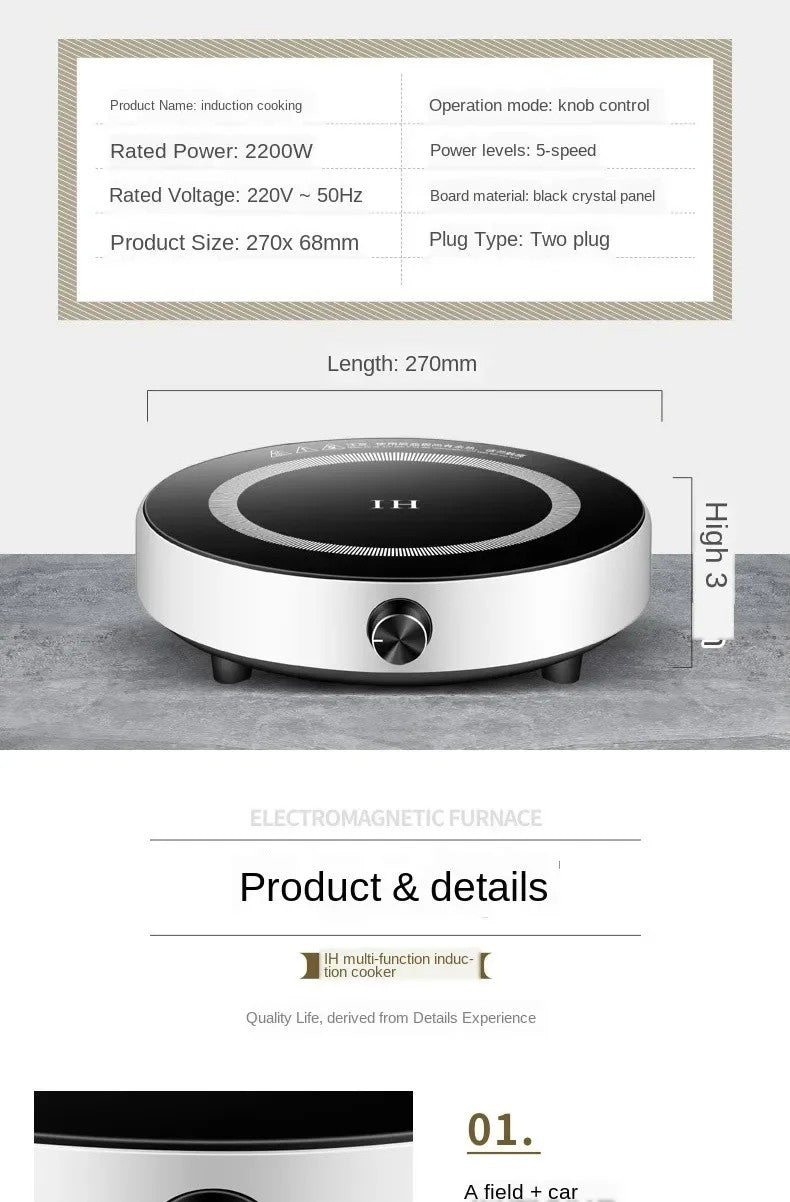 Descubra a praticidade do Fogão de Indução Redondo Pequeno Chcyus, o parceiro ideal para cozinhas compactas, dormitórios ou para a sua mesa de jantar. Apesar do tamanho mini, este fogão entrega uma potência robusta de 2200W (2.001-3.000W), garantindo aquecimento rápido e eficiência no preparo das suas refeições.