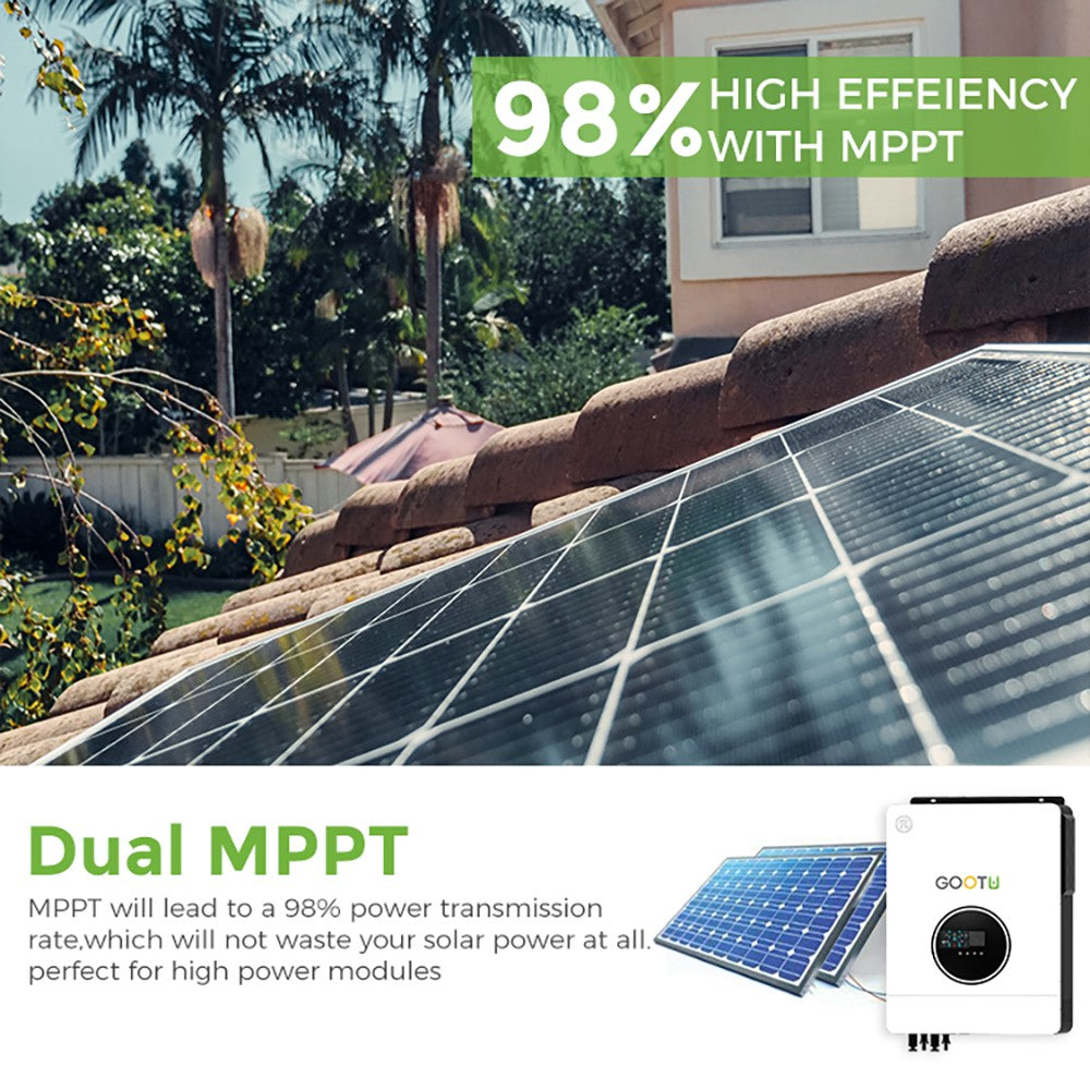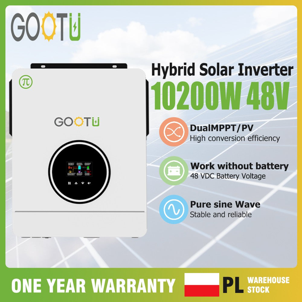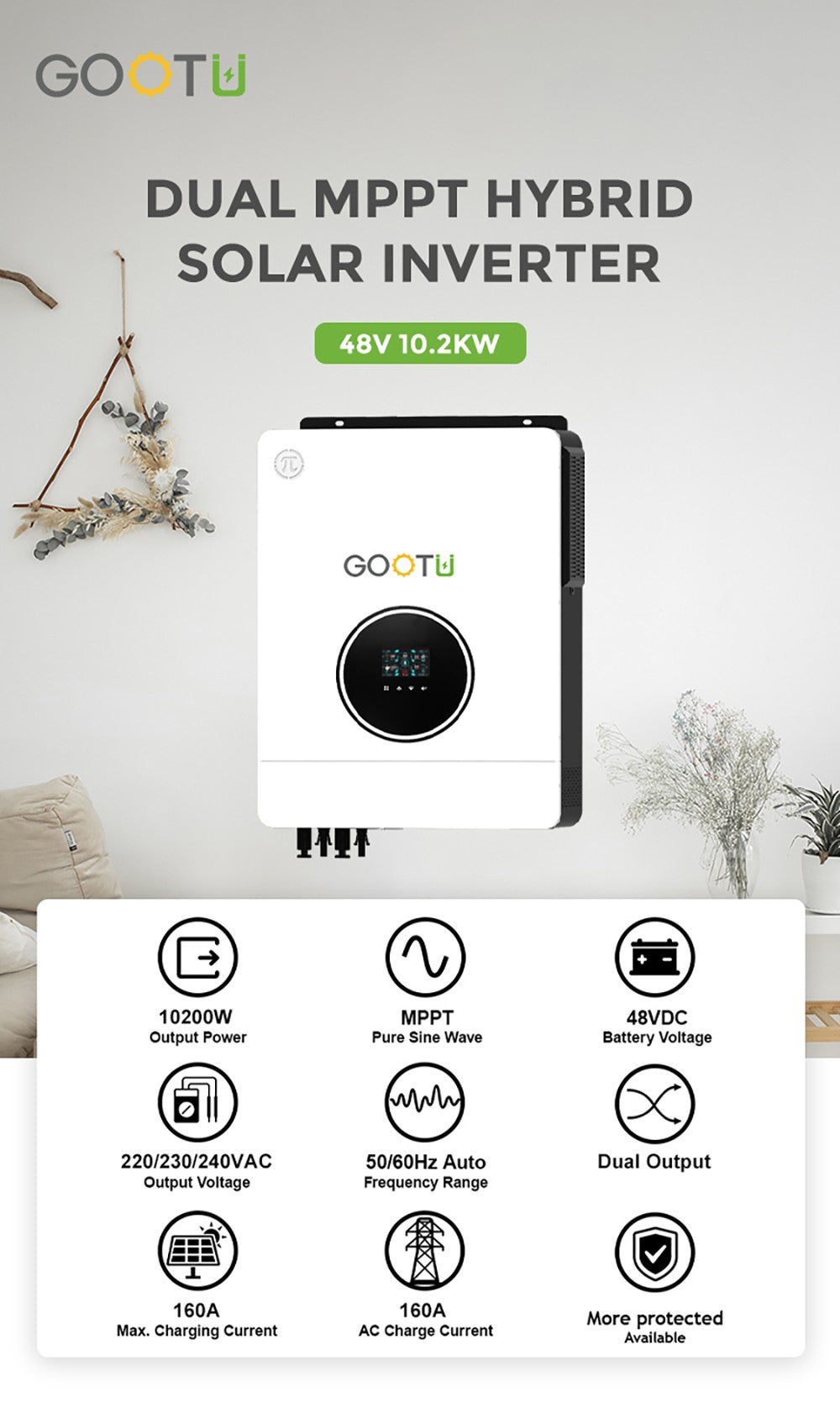 Gootu 6.2kw/10.2kw inversor solar híbrido saída dupla 24v/48v mppt 160a onda s