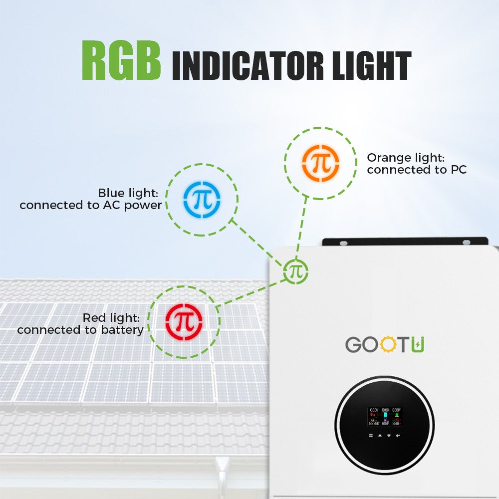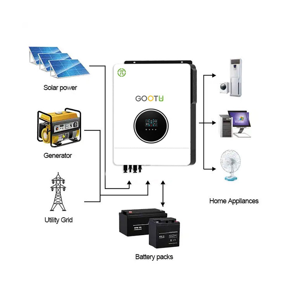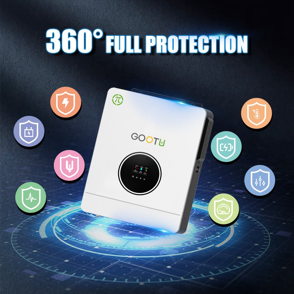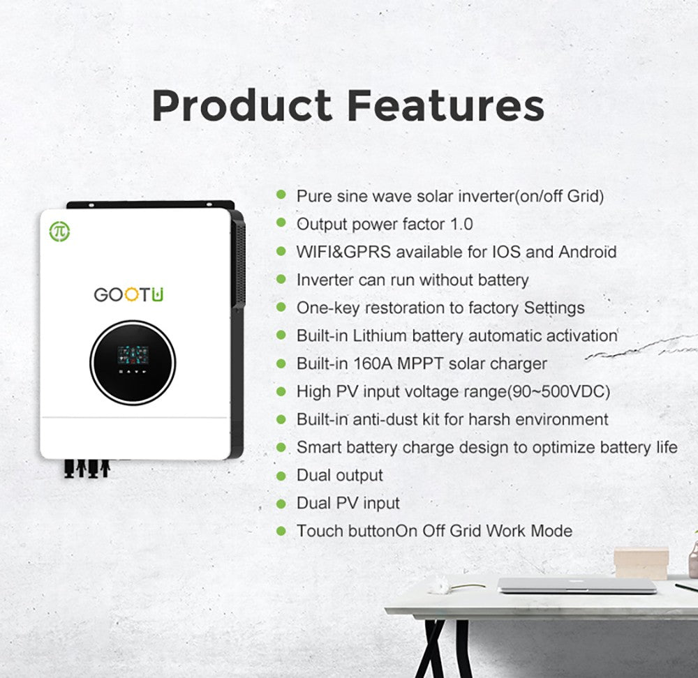 Gootu 6.2kw/10.2kw inversor solar híbrido saída dupla 24v/48v mppt 160a onda s
