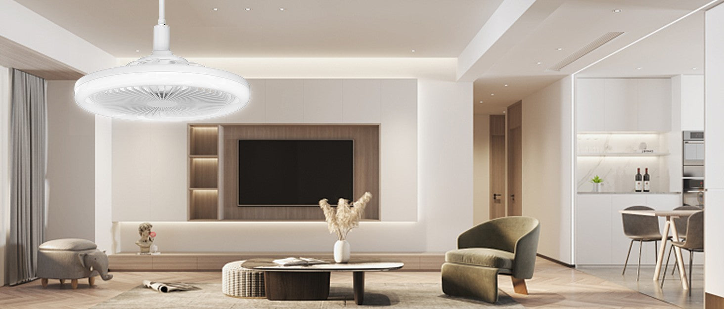Este ventilador opera em uma voltagem ampla de 85-265 V, sendo a escolha perfeita para cozinhas, quartos ou qualquer cômodo que precise de ventilação e luz forte (2000-82000 Fluxo Luminoso) de forma simples e moderna.