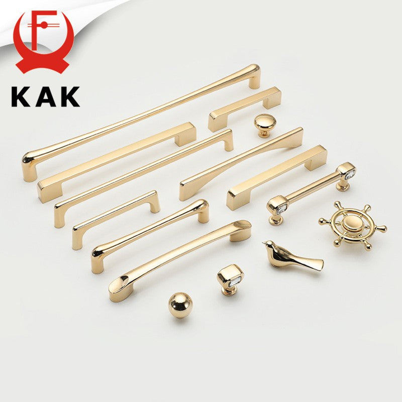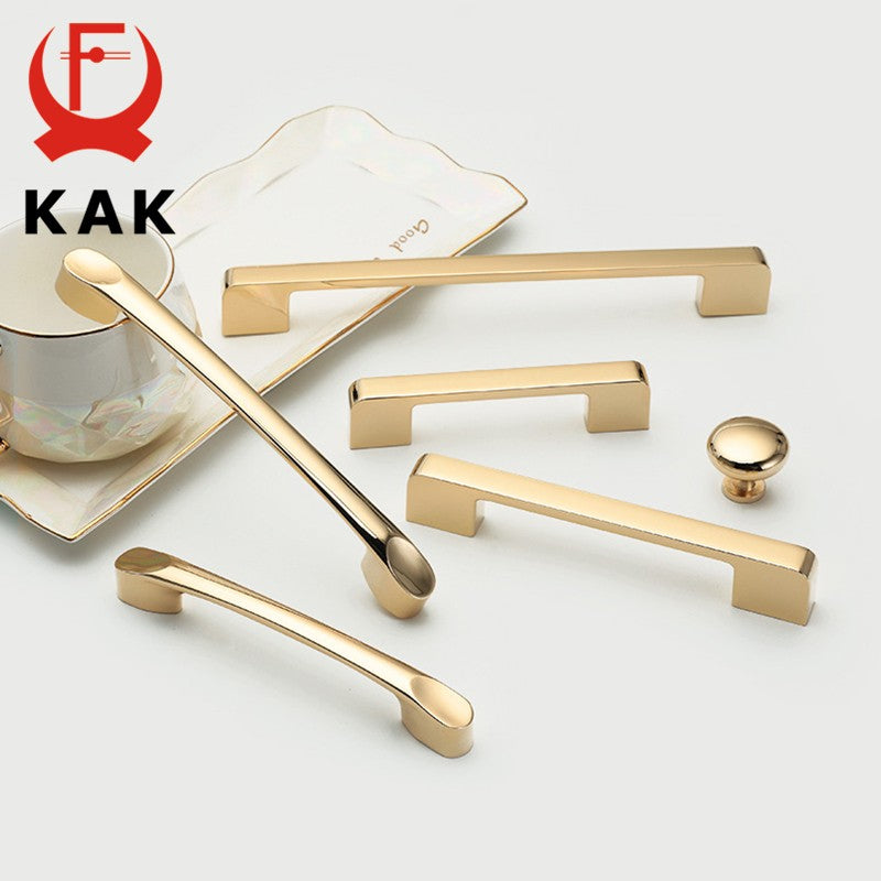 Kak maçaneta de cozinha dourada brilhante, puxadores e puxadores de armário da