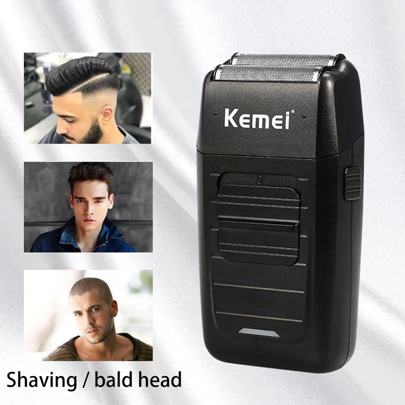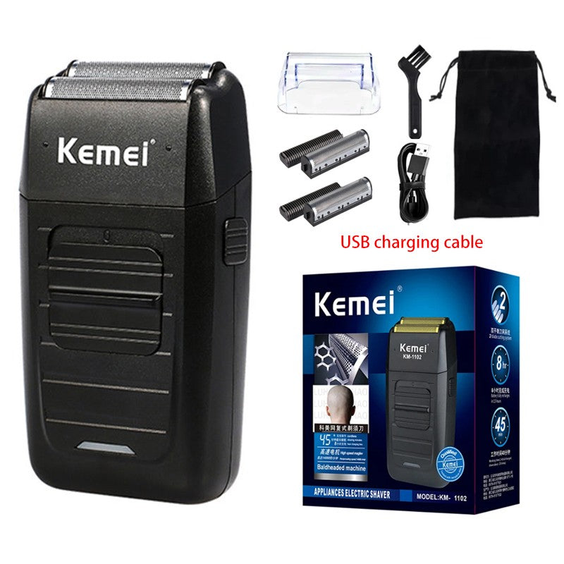 Kemei recarregável sem fio barbeador para homens lâmina dupla alternativa barb