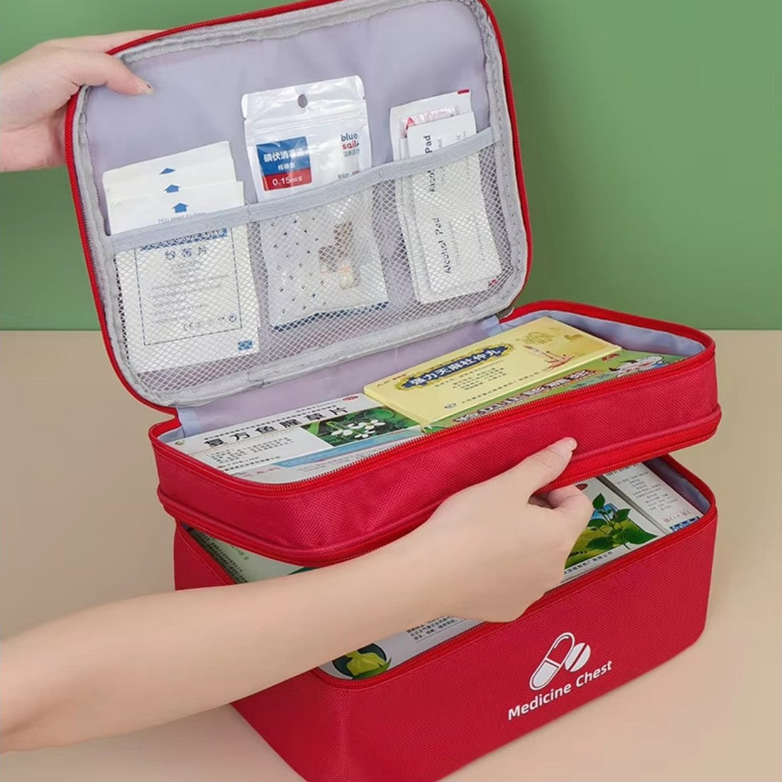 Kit de primeiros socorros para viagem em casa, camada dupla, armazenamento de cl