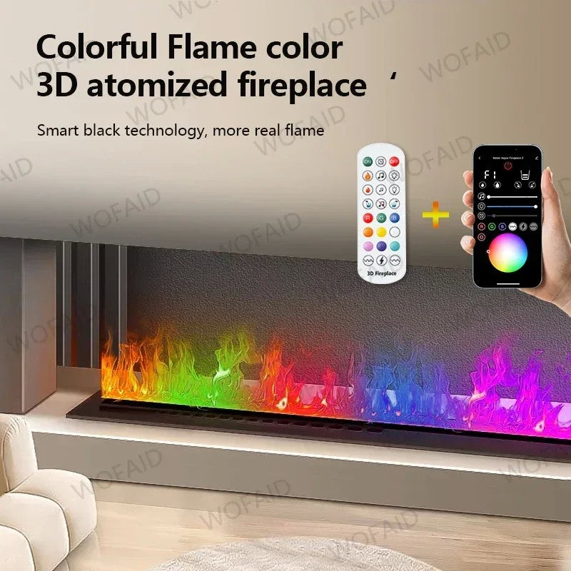 Lareira atomizadora 3D sem risco de incêndio, decoração ECO, neblina personalizada, simulação interna inteligente, chama colorida, fogo de vapor de água elétrica