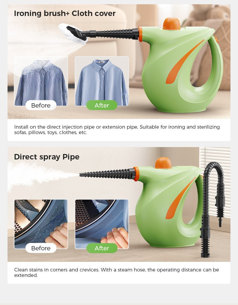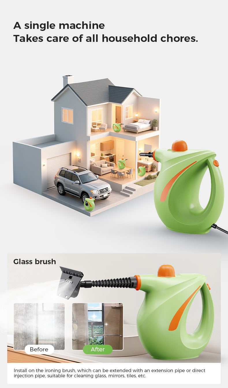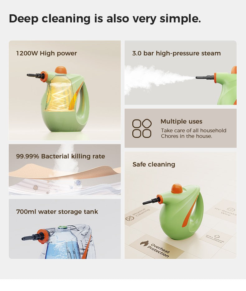 Apresentamos o Limpador a Vapor Portátil Docreate, a solução de alta performance para uma limpeza e desinfecção profunda em toda a sua casa. Com 1200W de potência e 3.0 Bar de pressão, este limpador portátil garante que você remova sujeira teimosa, graxa e mate germes sem o uso de produtos químicos.