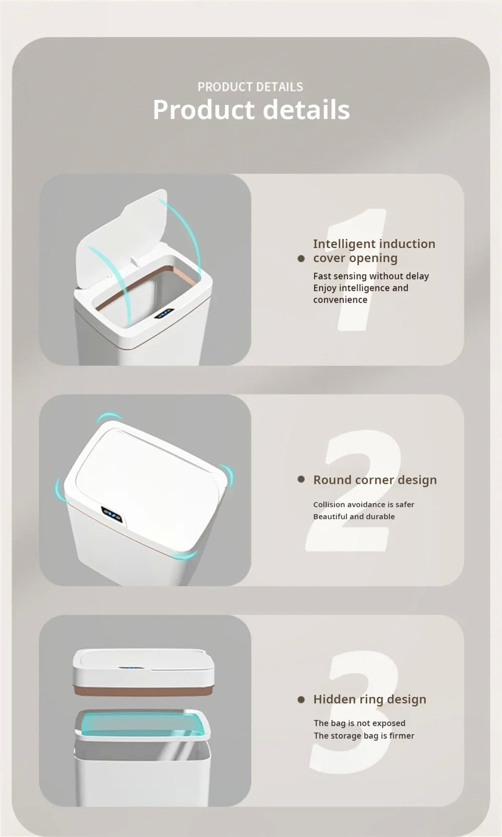 Lixeira inteligente de 15l, automaticamente sem toque, sensor inteligente, detec