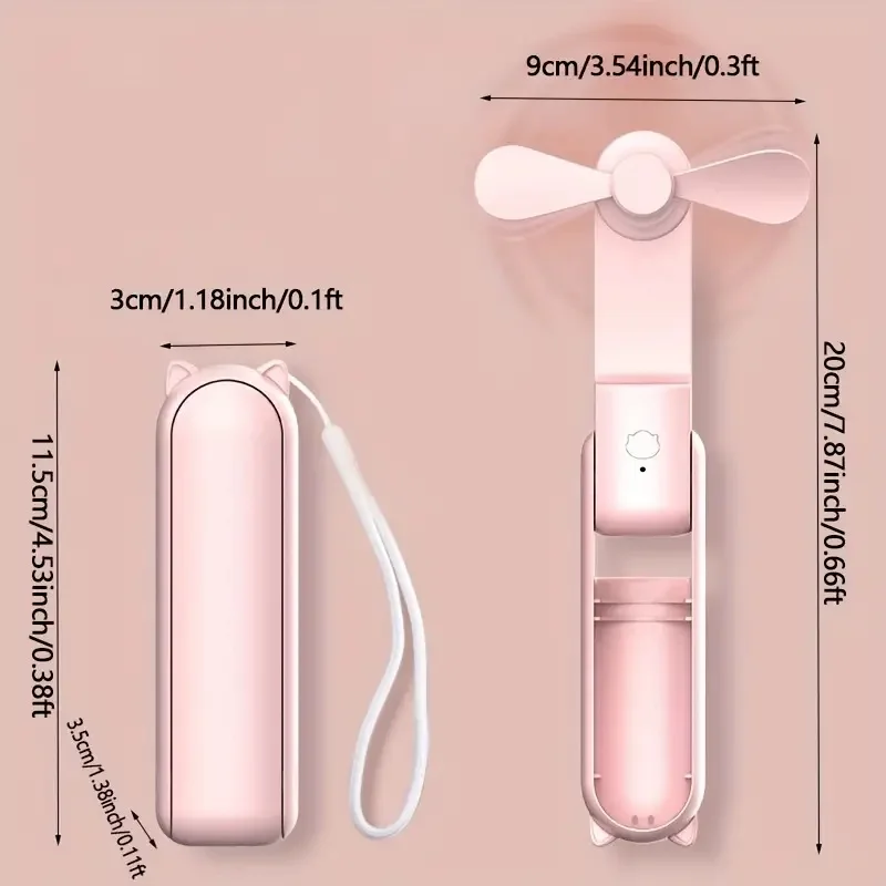 Mini ventilador portátil, recarregável por USB, ventilador portátil dobrável