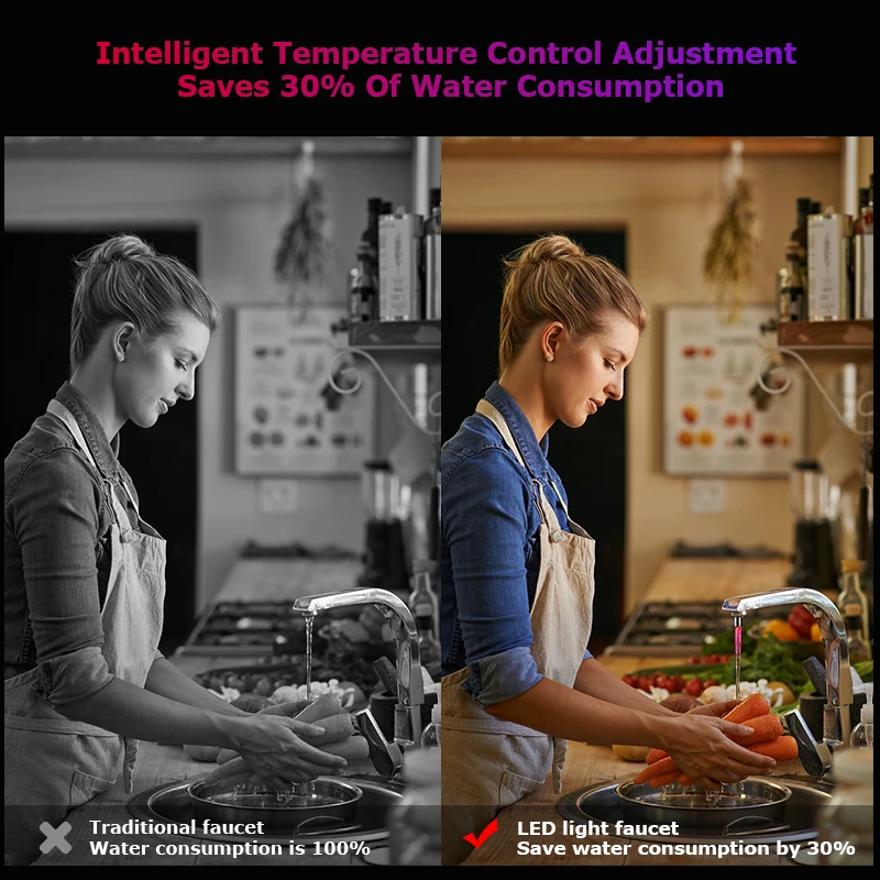 A luz sensível da torneira mudará cores de acordo com a temperatura da água.