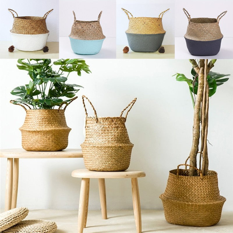 Nova palha tecelagem flor planta pote cesta grama plantador cesta interior ao ar