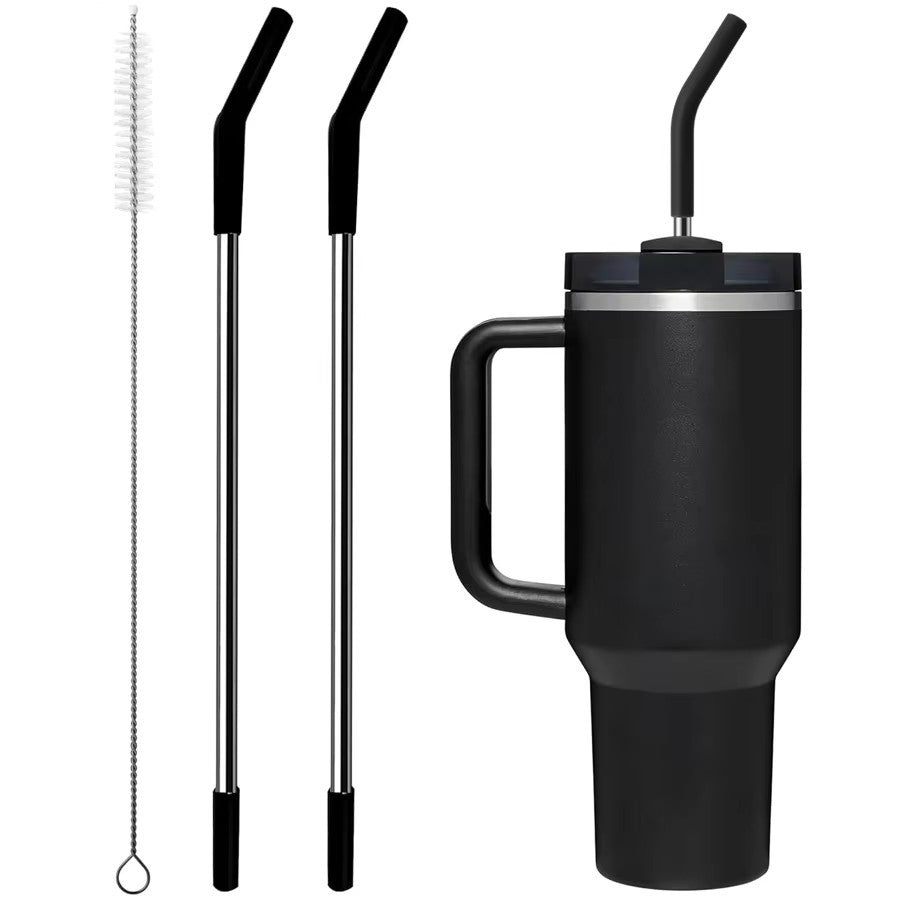Palha de aço inoxidável com ponta de silicone para Stanley Cup 2 peças canudos de substituição para Stanley 40 onças/30 onças copo 1 peça escova de palha