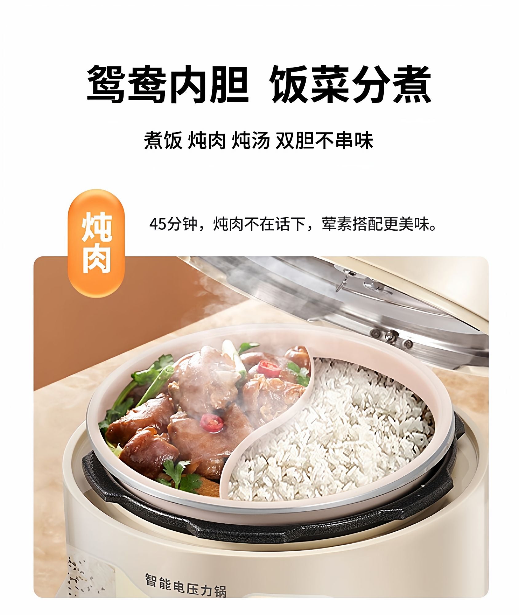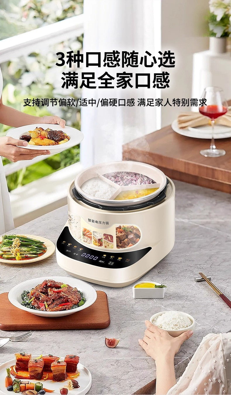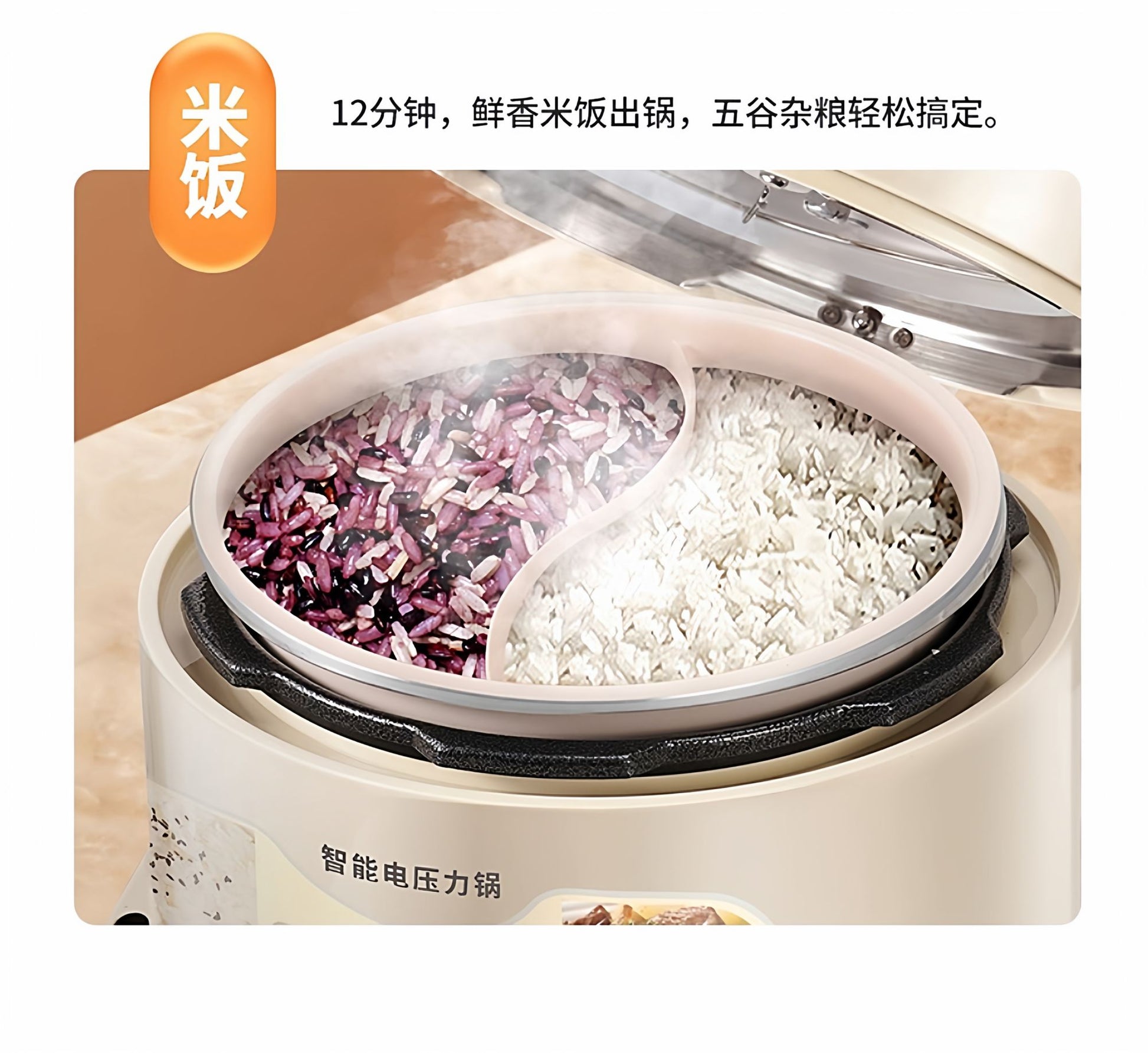 Design Inovador 2 em 1: Esta panela multifuncional não só cozinha sob pressão (ideal para feijão, carnes e ensopados) mas também funciona como uma panela de arroz de alta qualidade.