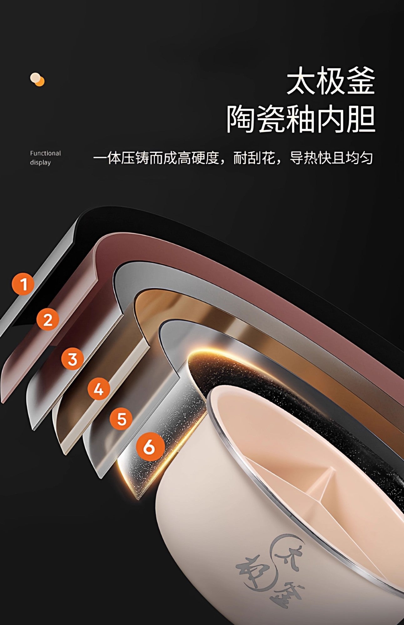 Panela Interna Dupla: Acompanha uma panela interna dupla com revestimento de Esmalte Cerâmico (Ceramic Glaze). Este material premium garante que o cozimento seja uniforme e antiaderente, além de facilitar a limpeza e aumentar a durabilidade.
