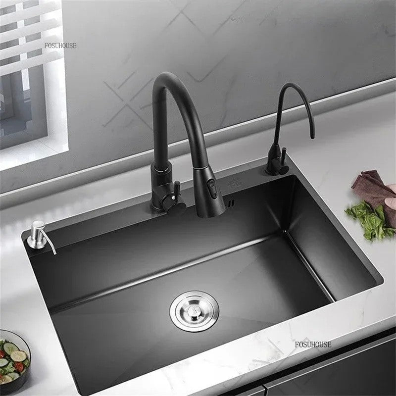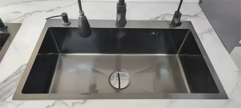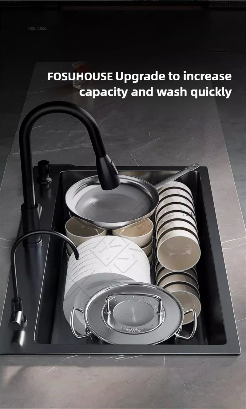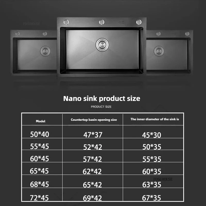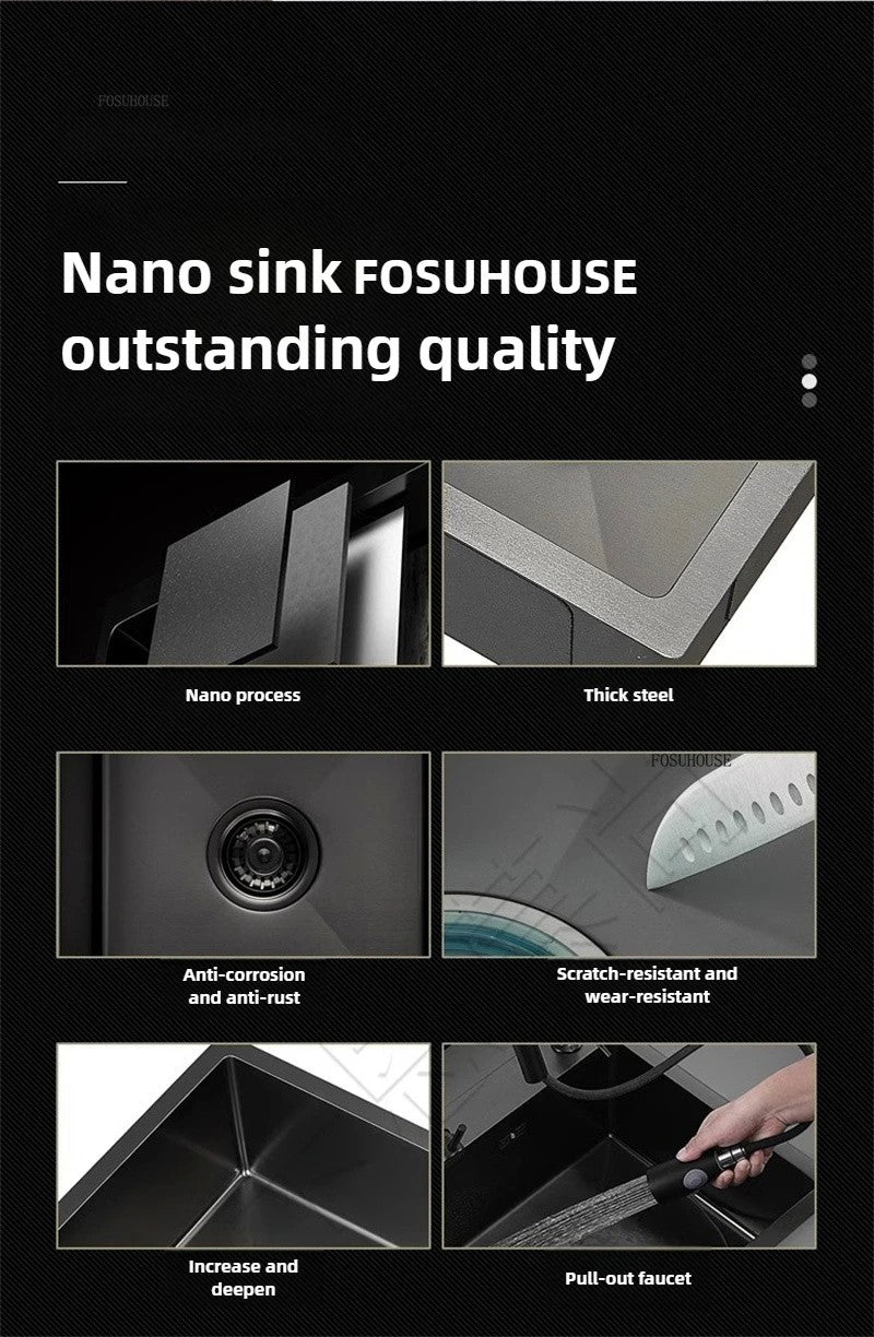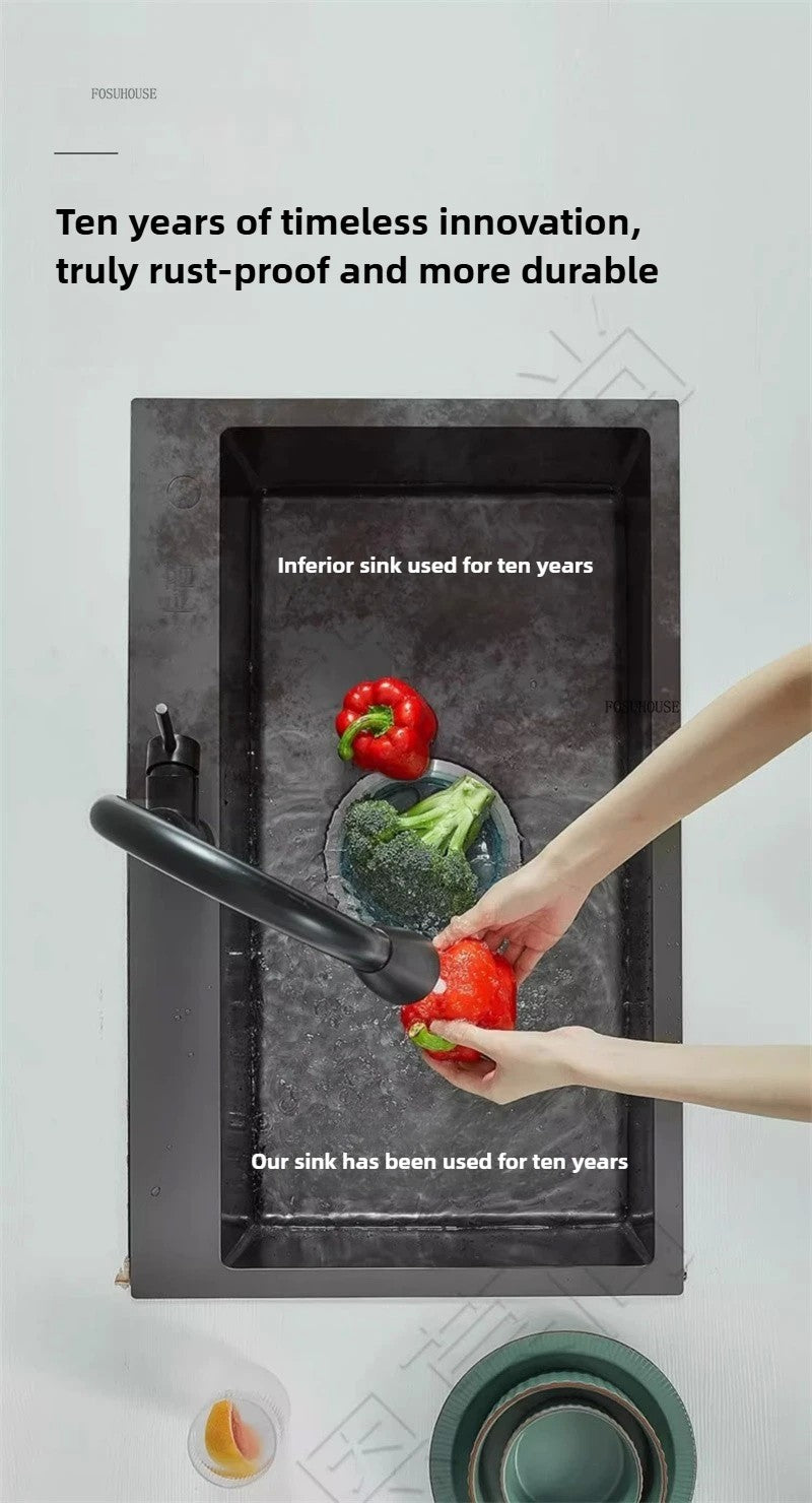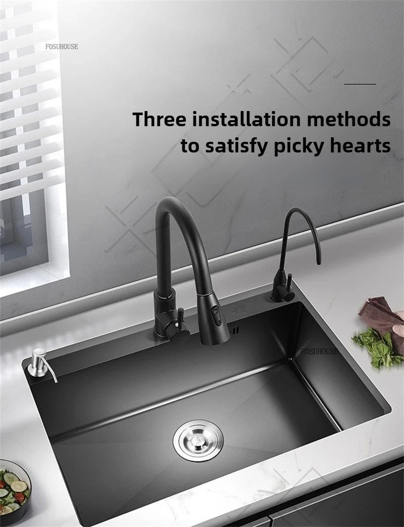Pia de cozinha de aço inoxidável 304 espessada, tigela única de grande capacidade, preta, nano, pias de cozinha, bancada doméstica, pia para lavar louça