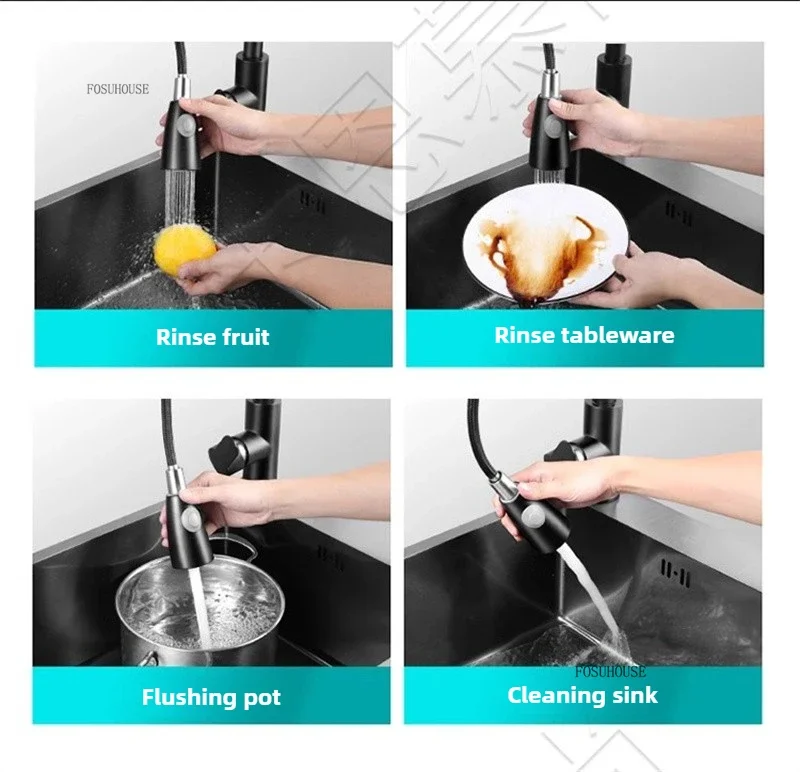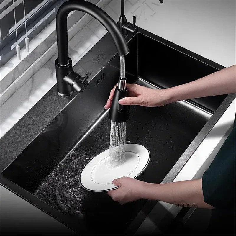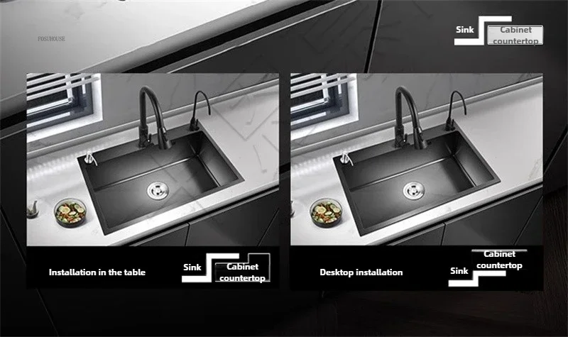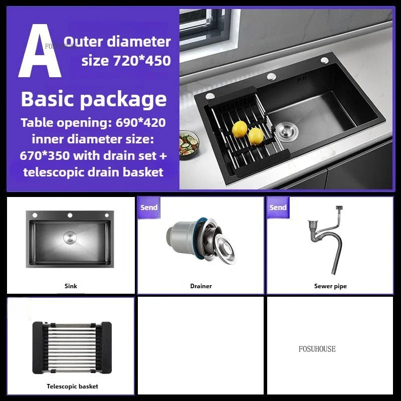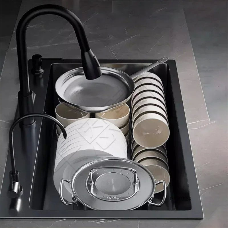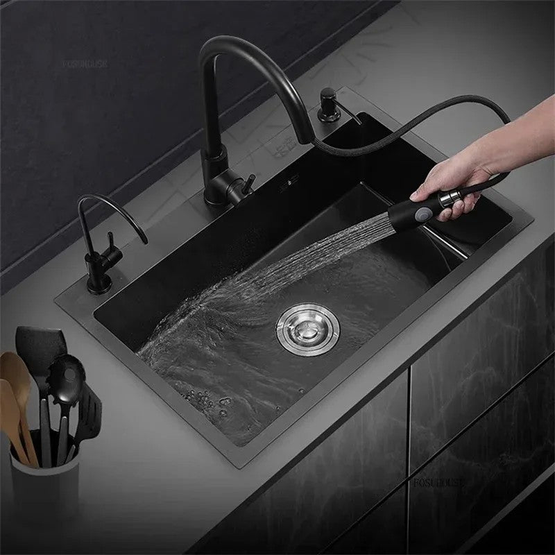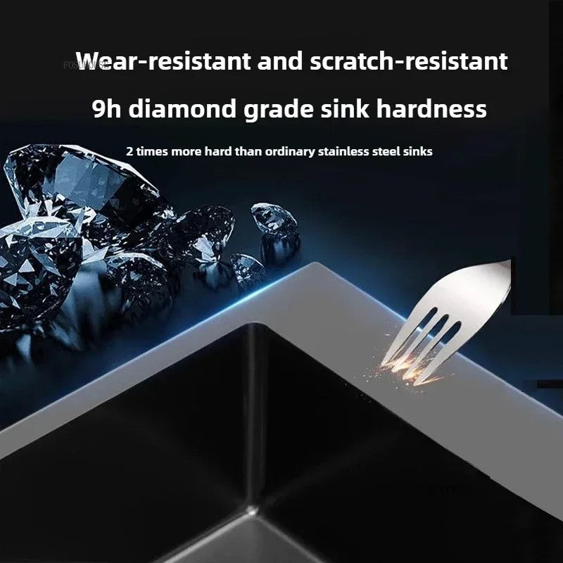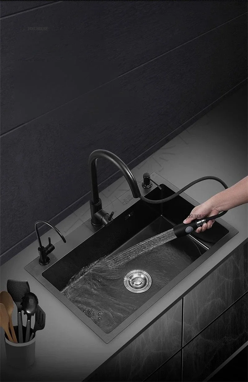 Pia de cozinha de aço inoxidável 304 espessada, tigela única de grande capacidade, preta, nano, pias de cozinha, bancada doméstica, pia para lavar louça