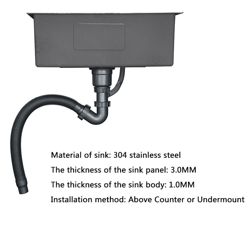 Pia de cozinha em aço inoxidável sem costura, Bacia de lavagem vegetal sob mon