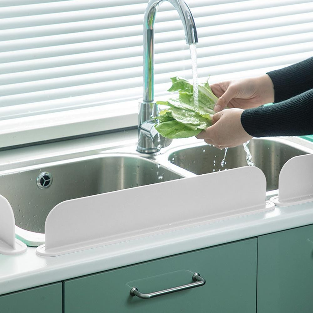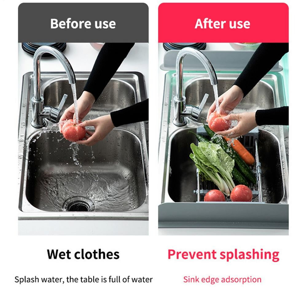 4.Material forte: Projetado com silicone de longa duração, este produto garante eficácia sustentada e resiste ao uso regular, garantindo uma solução confiável para minimizar a bagunça ao redor das pias;