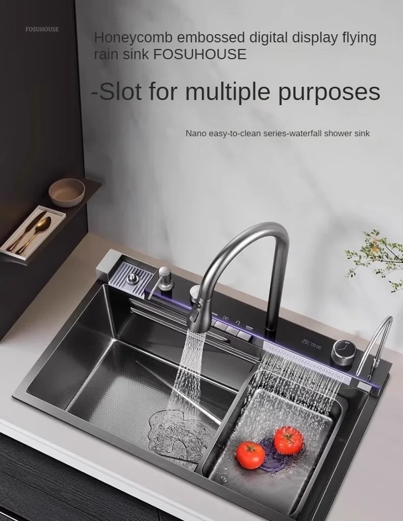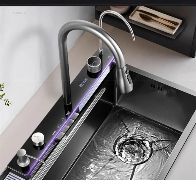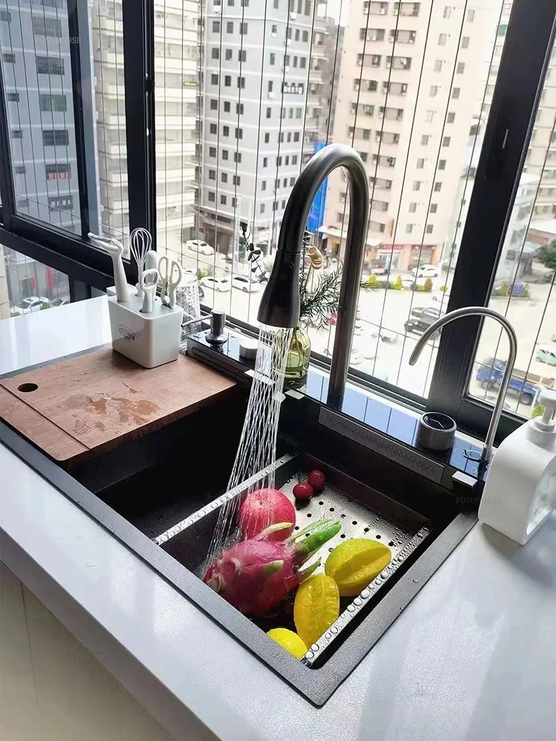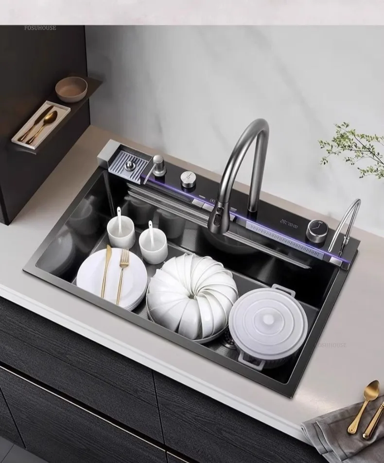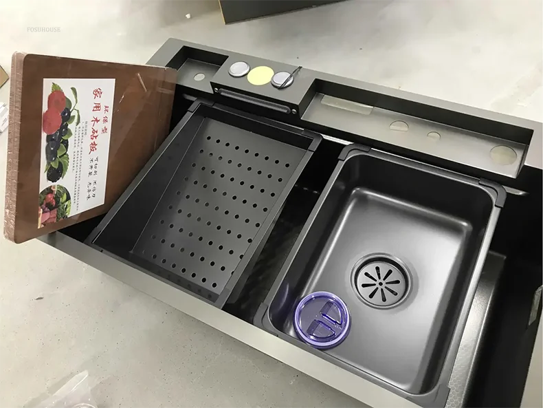 Pias de cozinha inteligentes com slot único para apartamentos, pias multifuncio