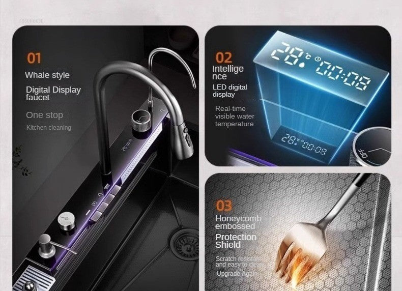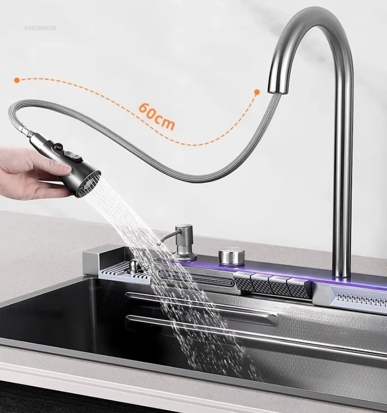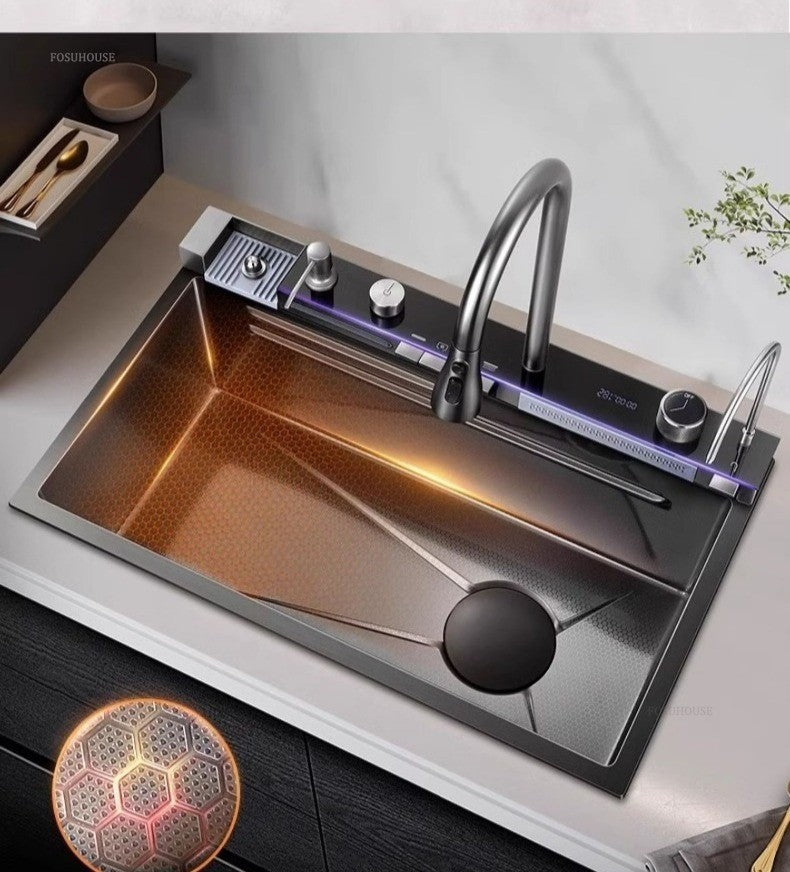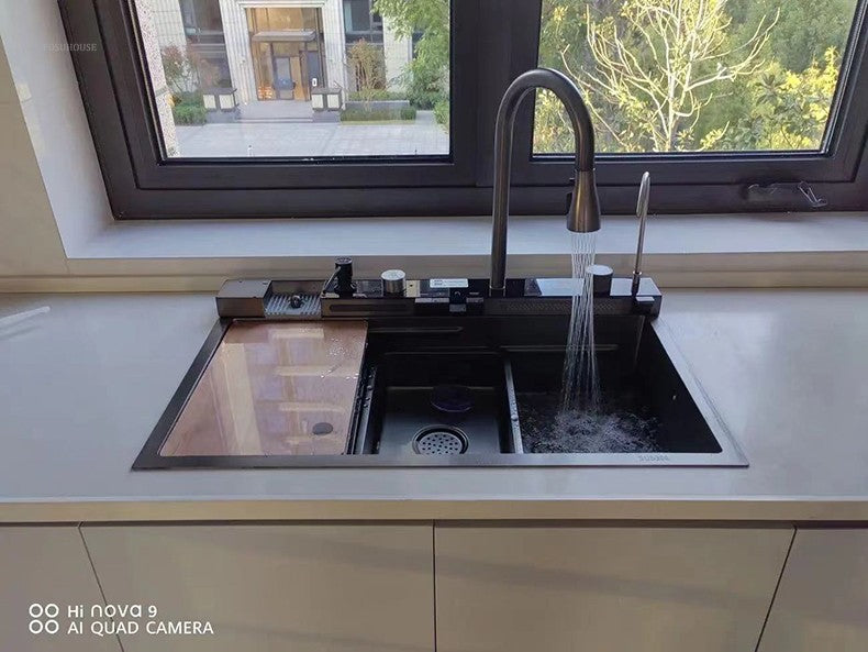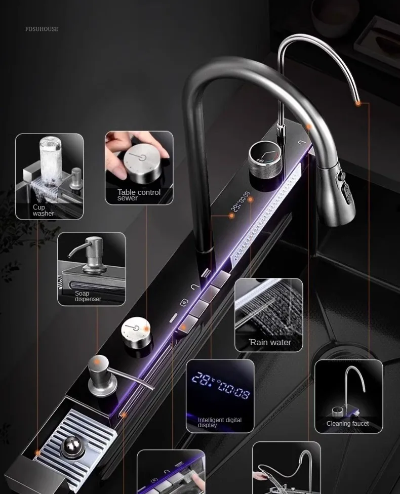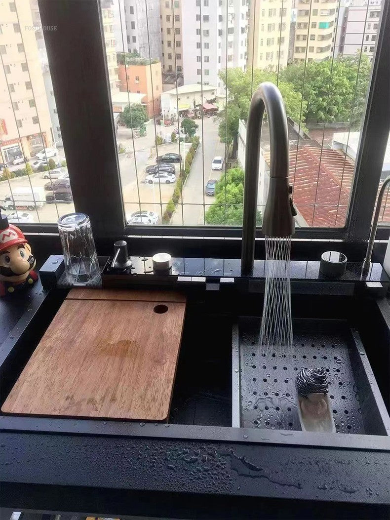 Pias de cozinha inteligentes com slot único para apartamentos, pias multifuncio