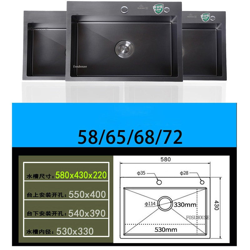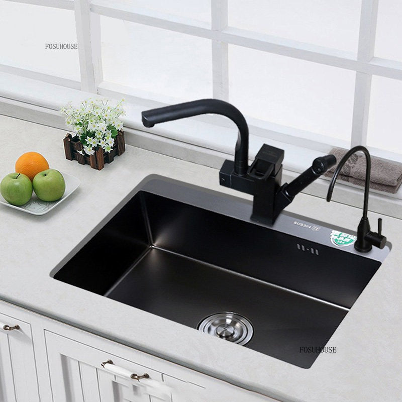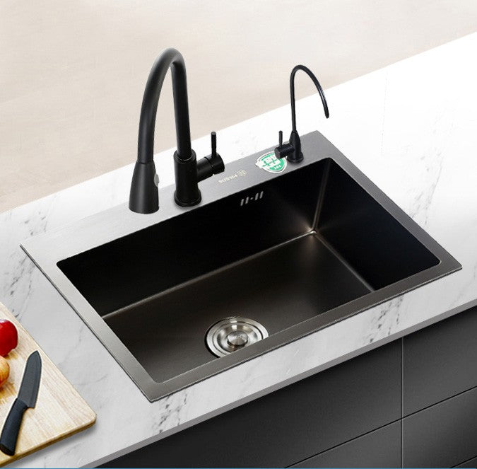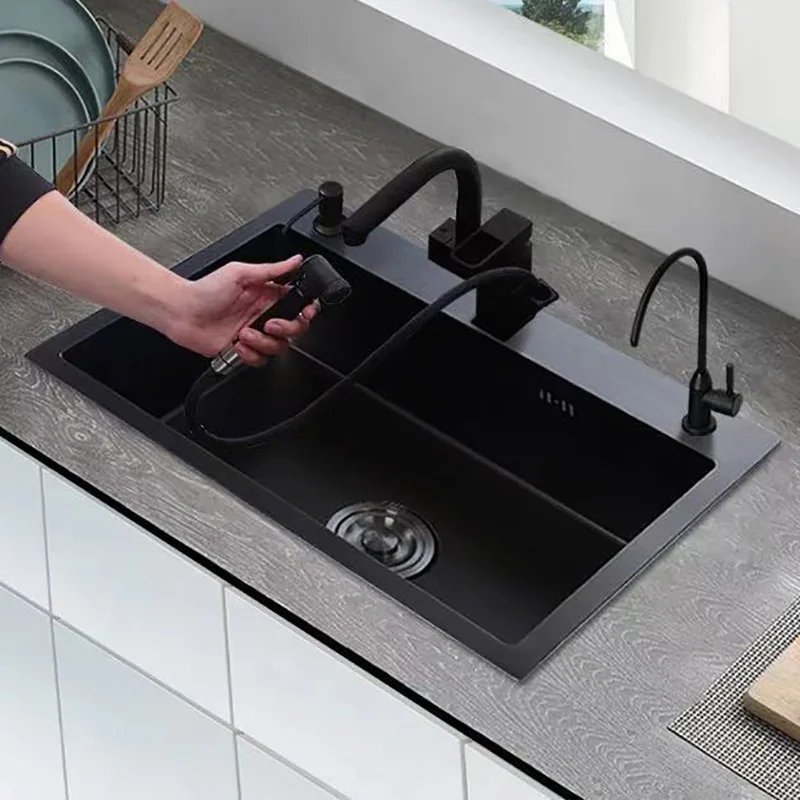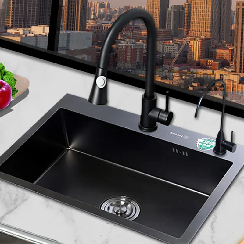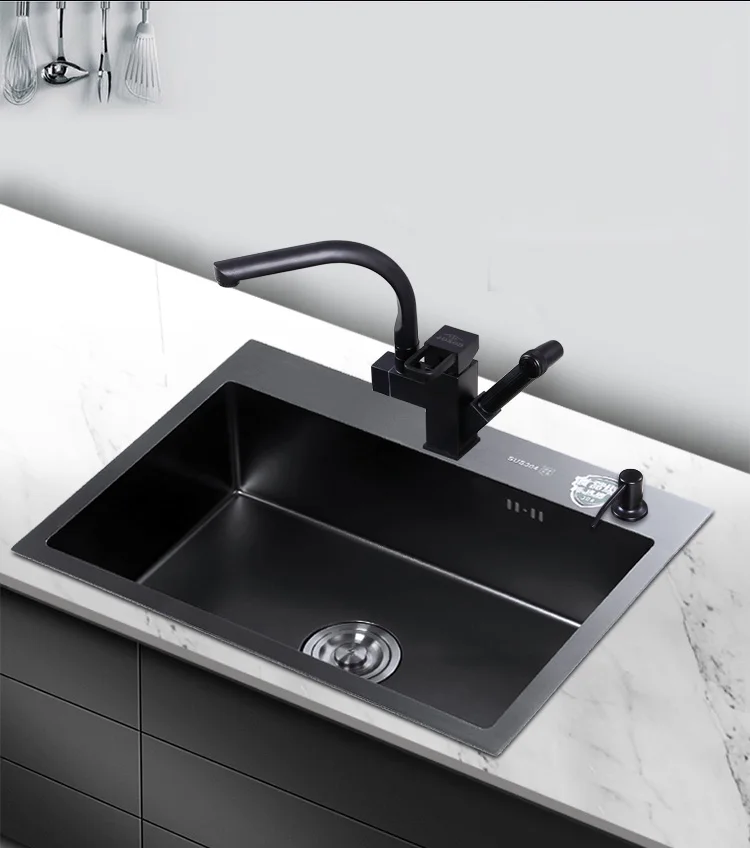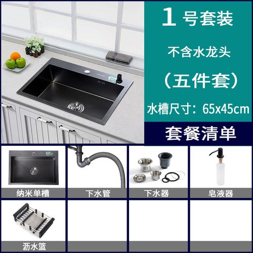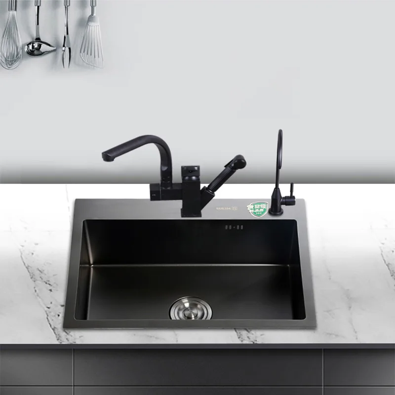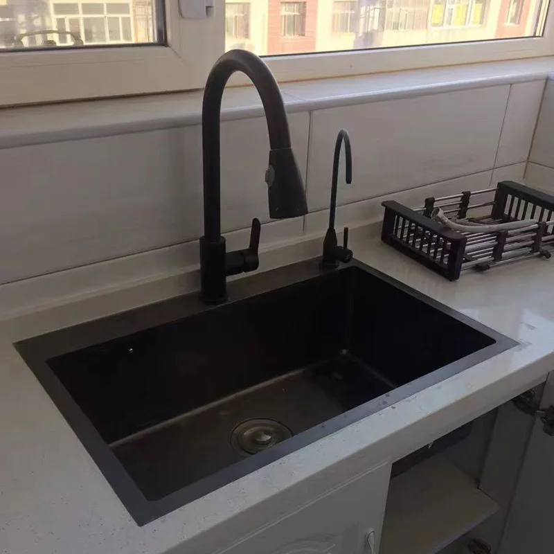 Pias simples feitas à mão para bancada de cozinha, pias de lavagem nano pretas