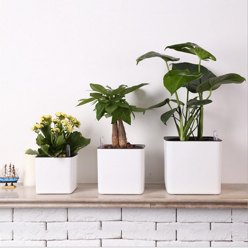Plantador branco com rega automática, indicador de água, vaso decorativo moder