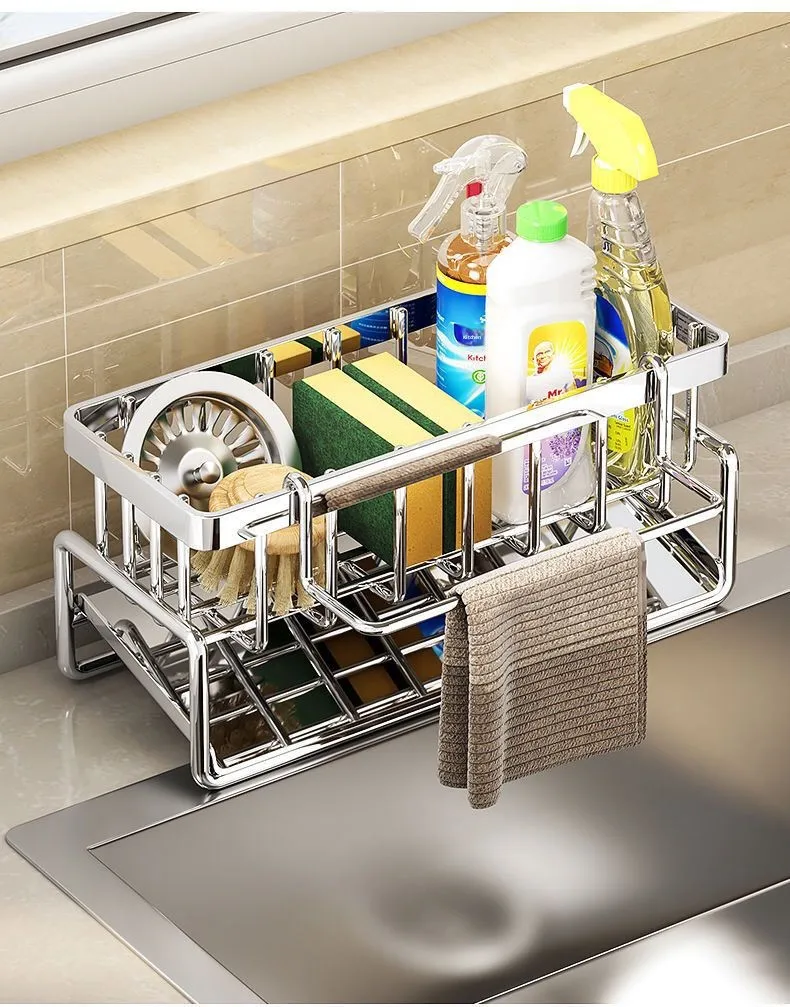 Rack de armazenamento multifuncional para bancada de pia de cozinha