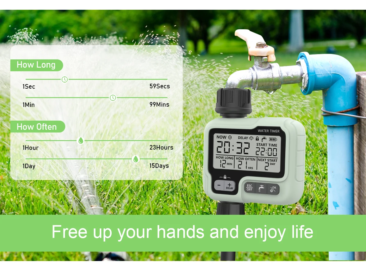 Temporizador automático de água do jardim, máquina de controle digital, asper