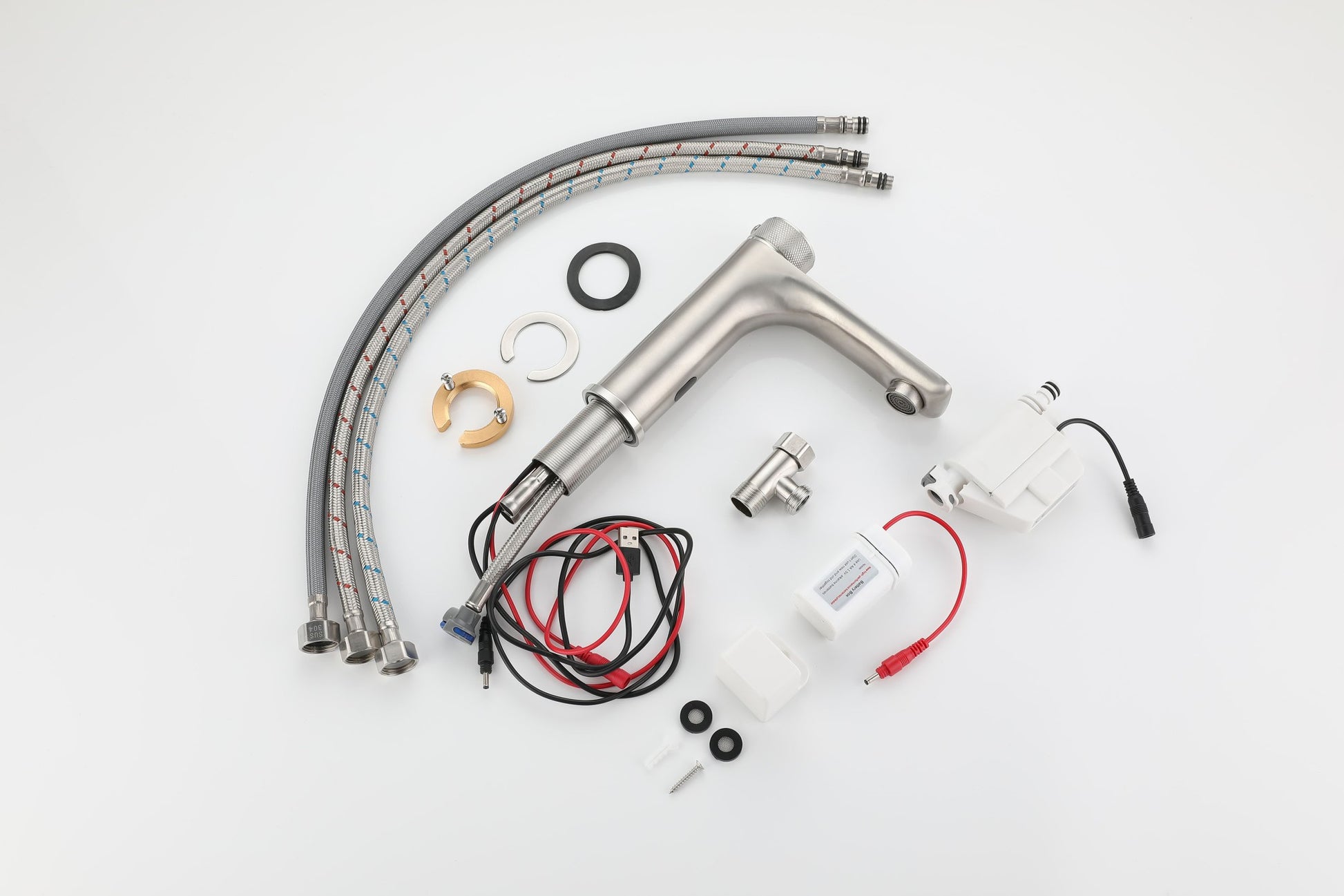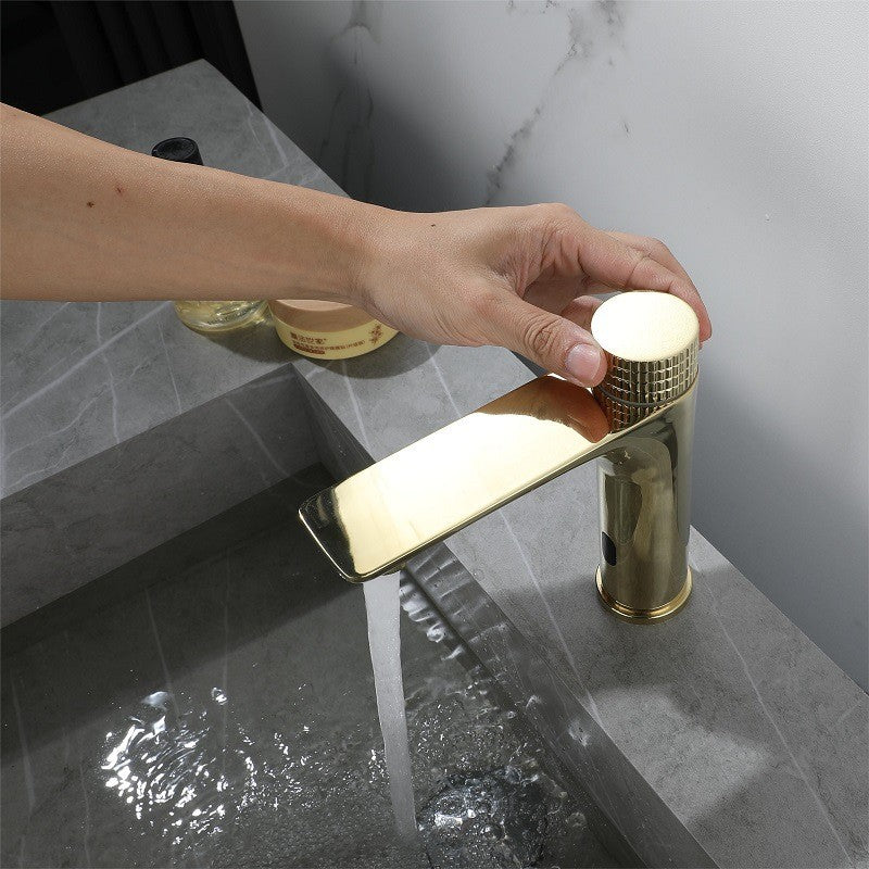 Latão Smart Sensor Bacia banheiro torneira Deck montado frio e água quente Mixer lavatório torneira guindaste infravermelho Sensação