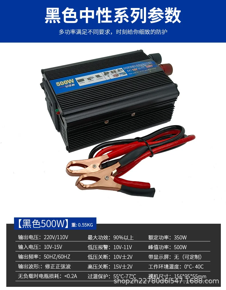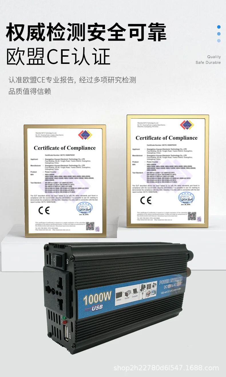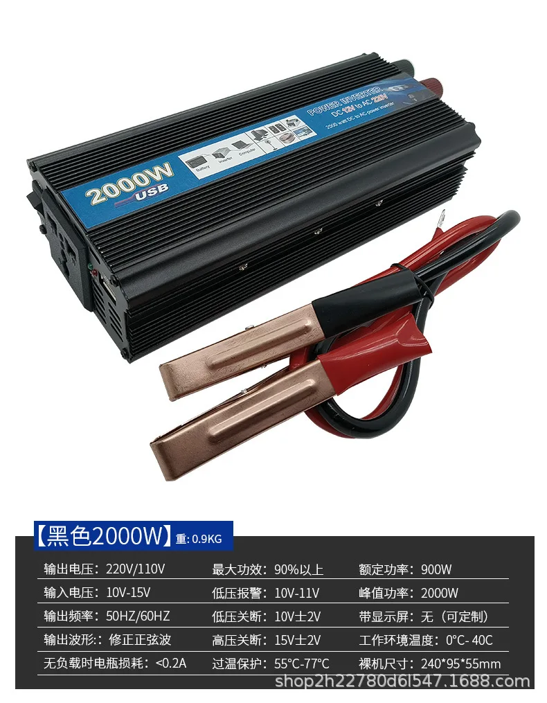 Onda de corda de correção de venda quente 12V a 220V inversor solar 500W1000W2000W conversor de energia