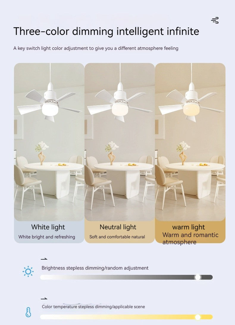 Apresentamos o Ventilador de Teto LED Multifuncional, a solução moderna e inteligente para iluminar e refrescar seu ambiente com a máxima simplicidade. Este design 2 em 1 em formato de flor se aparrafusa diretamente em qualquer soquete E27, eliminando instalações complexas.