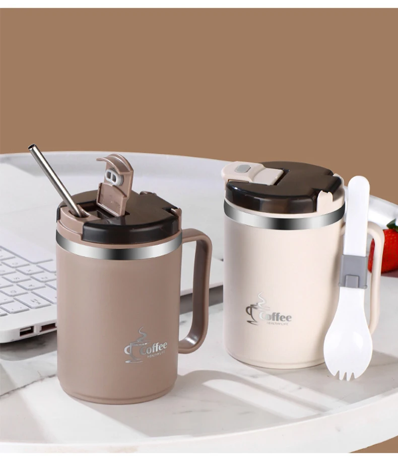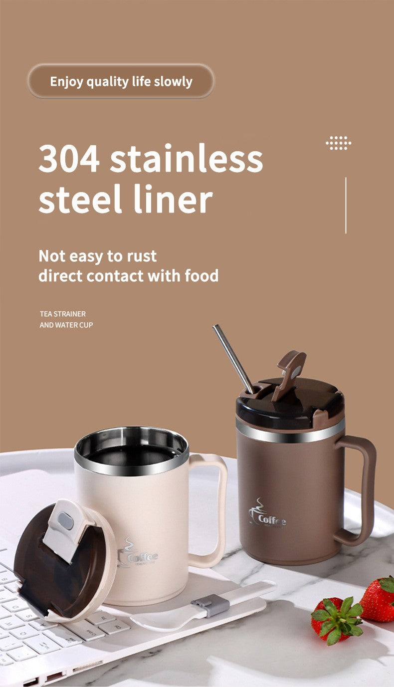 WORTHBUY Copo de café térmico de parede duplo com filtro e colher 304 copo de