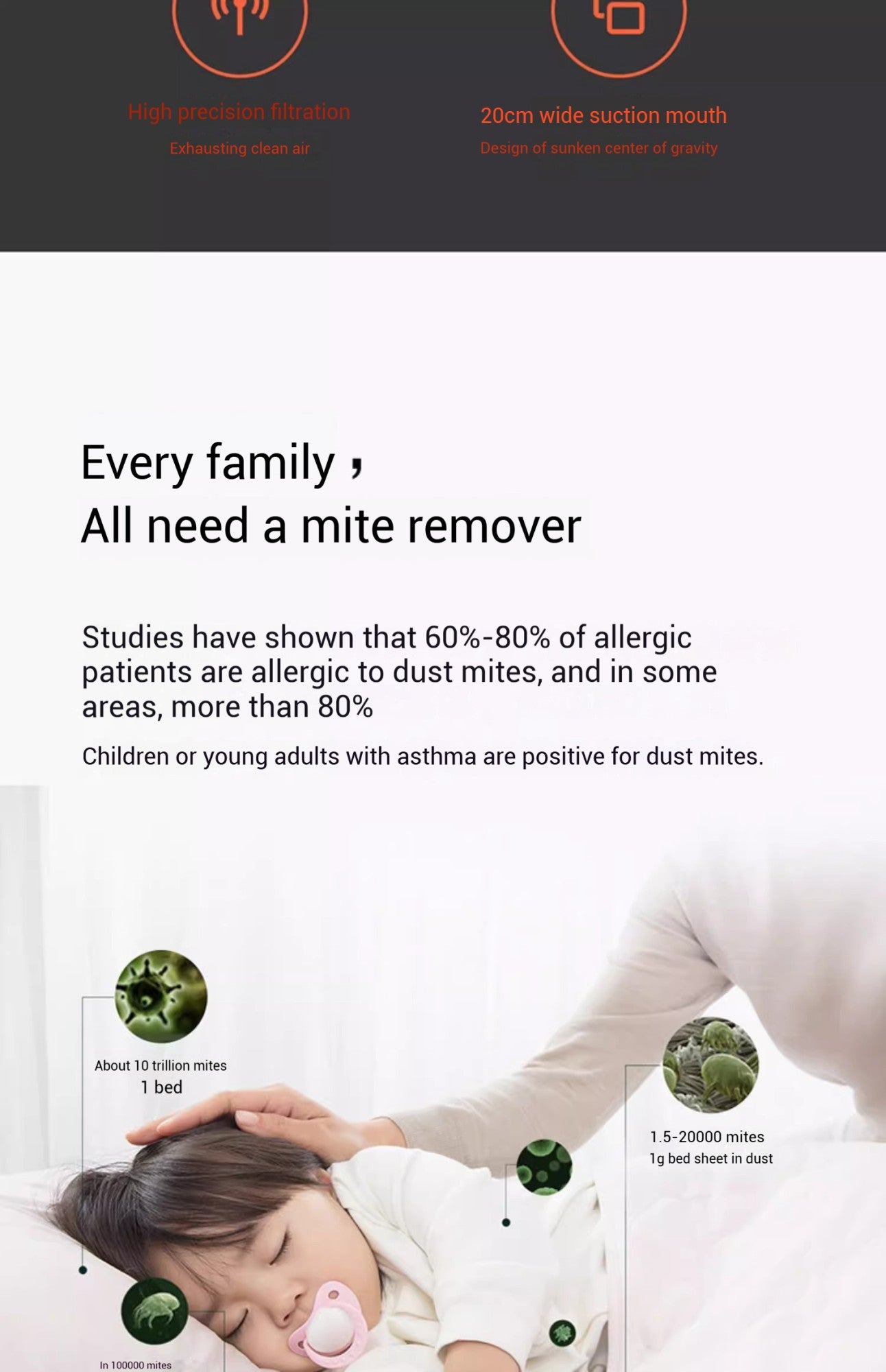 Invista na saúde respiratória da sua família. Com o Xiaomi Mijia, a remoção de ácaros e a esterilização são feitas com a máxima eficiência e tecnologia.