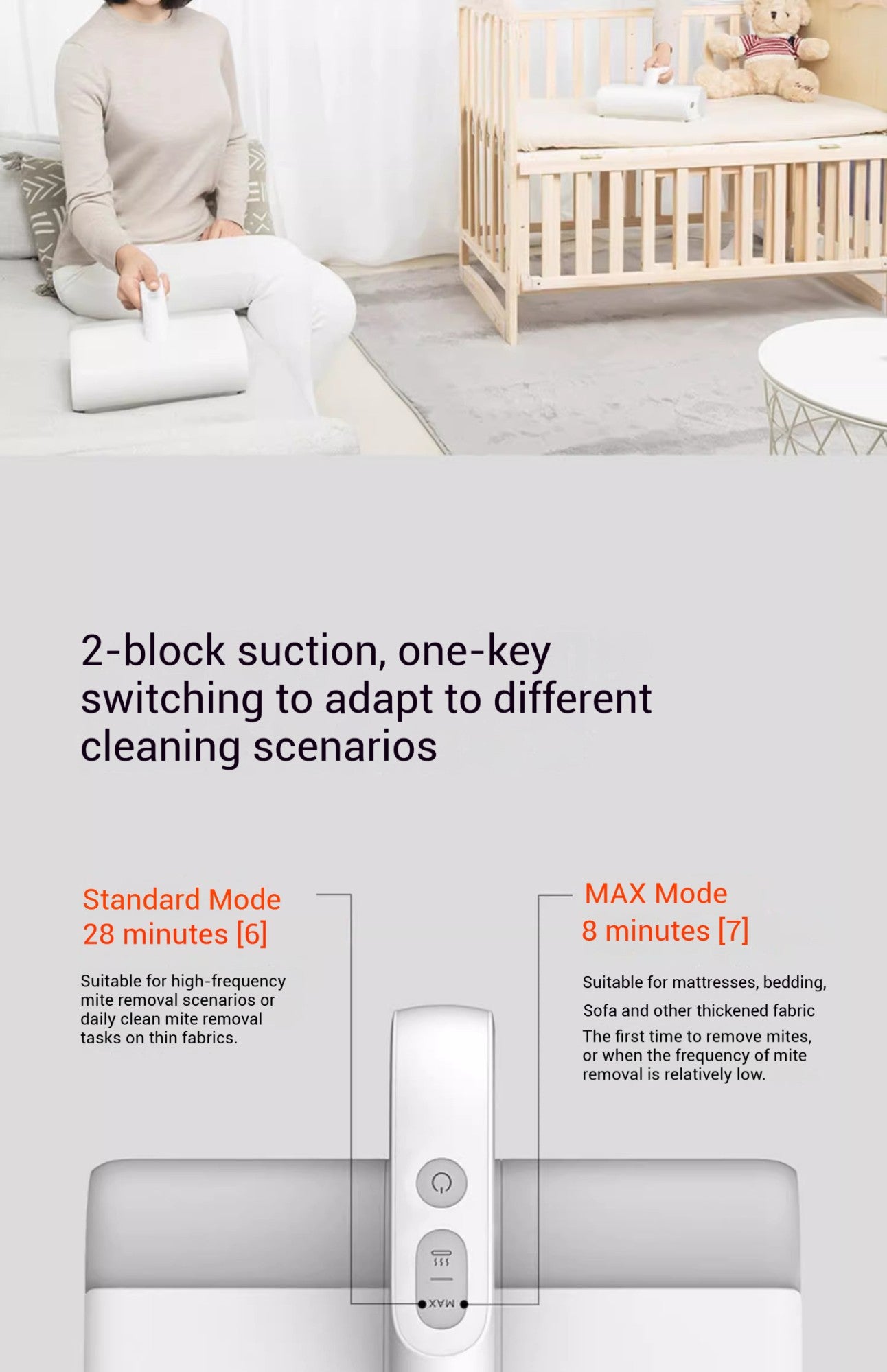Mantenha sua casa e sua cama livres de alérgenos com o Removedor de Ácaros Sem Fio Xiaomi Mijia. Este potente instrumento de limpeza foi projetado especificamente para a higienização profunda de colchões, travesseiros e estofados, garantindo um ambiente mais saudável para você e sua família.
